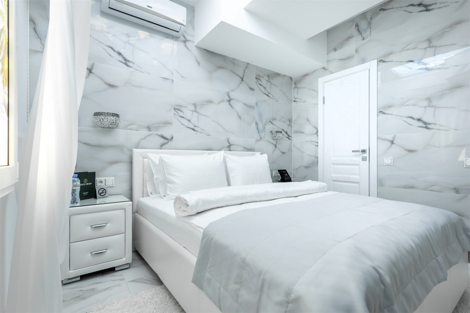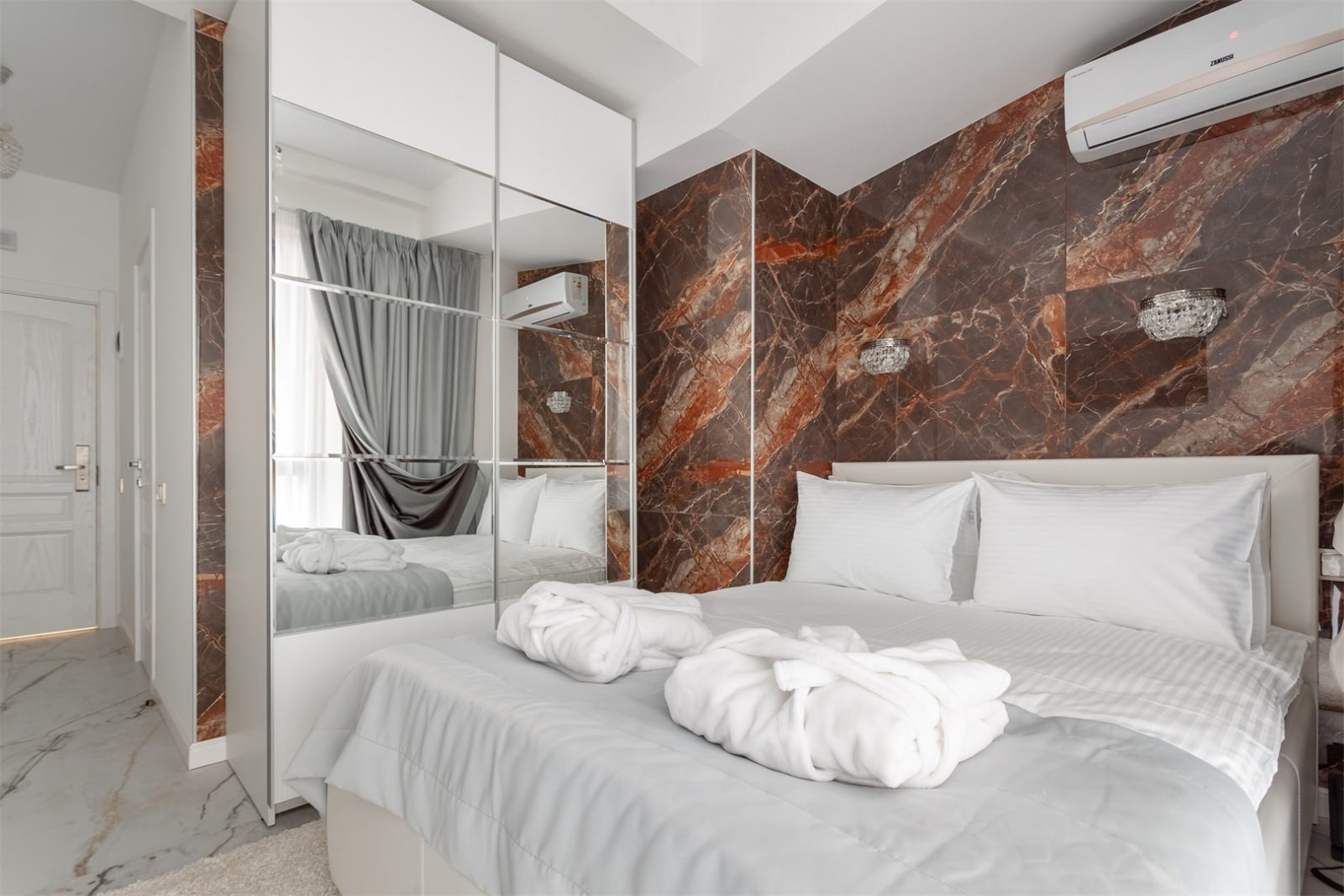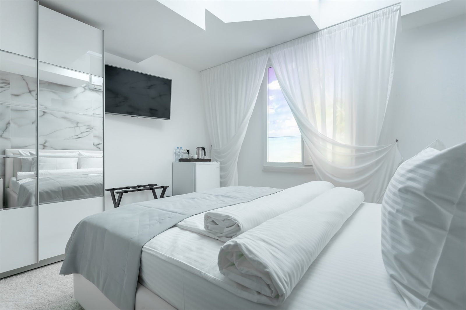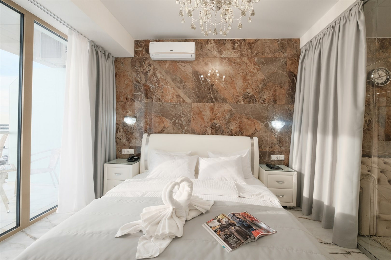 Пятиэтажное здание отеля с лифтом, находится в 300 метрах от морского побережья. Жилой фонд, рассчитанный на 130 человек, предлагает отдыхающим однокомнатные номера разной категории — от Эконома до Сьюта и Люкса. В номерах стильный современный интерьер, выдержанных в светлых тонах с включением мраморных элементов. Каждый номер независимо от степени комфорта оснащен санузлом с душем, кондиционером и укомплектован необходимой техникой — есть телевизор, фен, холодильник. В Студиях оборудована удобная мини-кухня, номера повышенной комфортности оборудованы дополнительной техникой, из ряда комнат открываются панорамные виды на морское побережье.