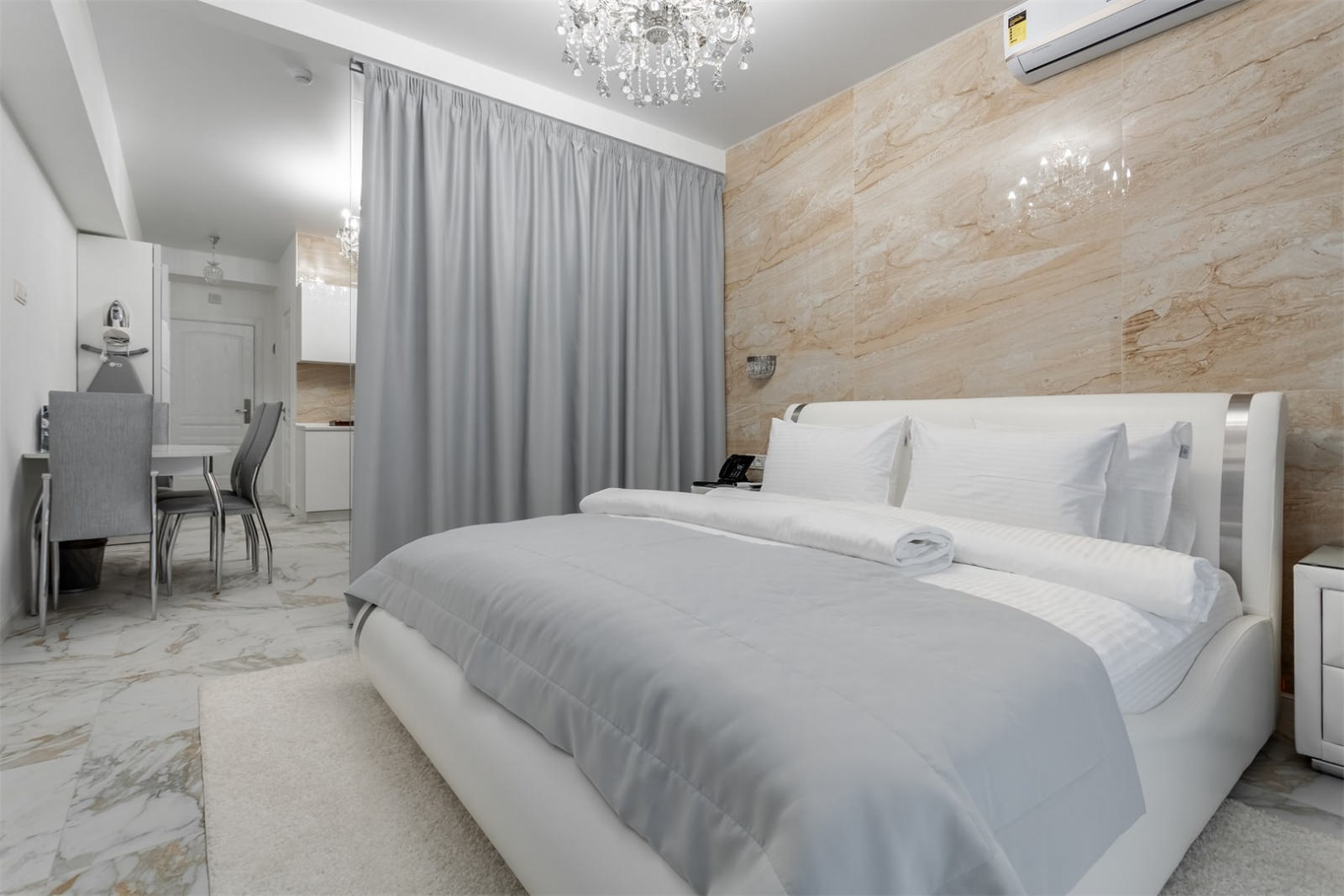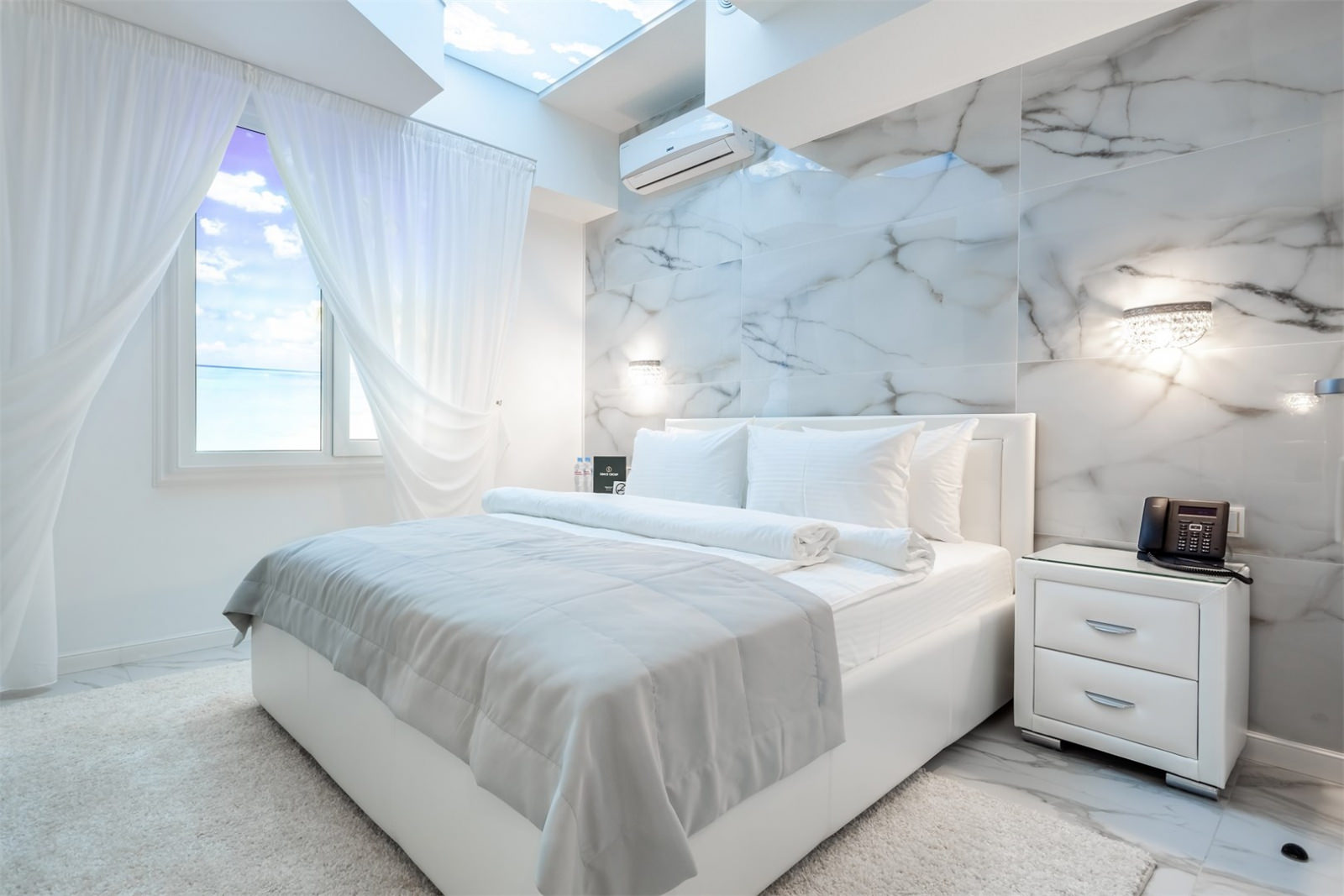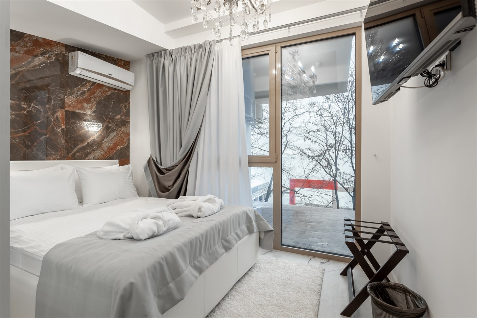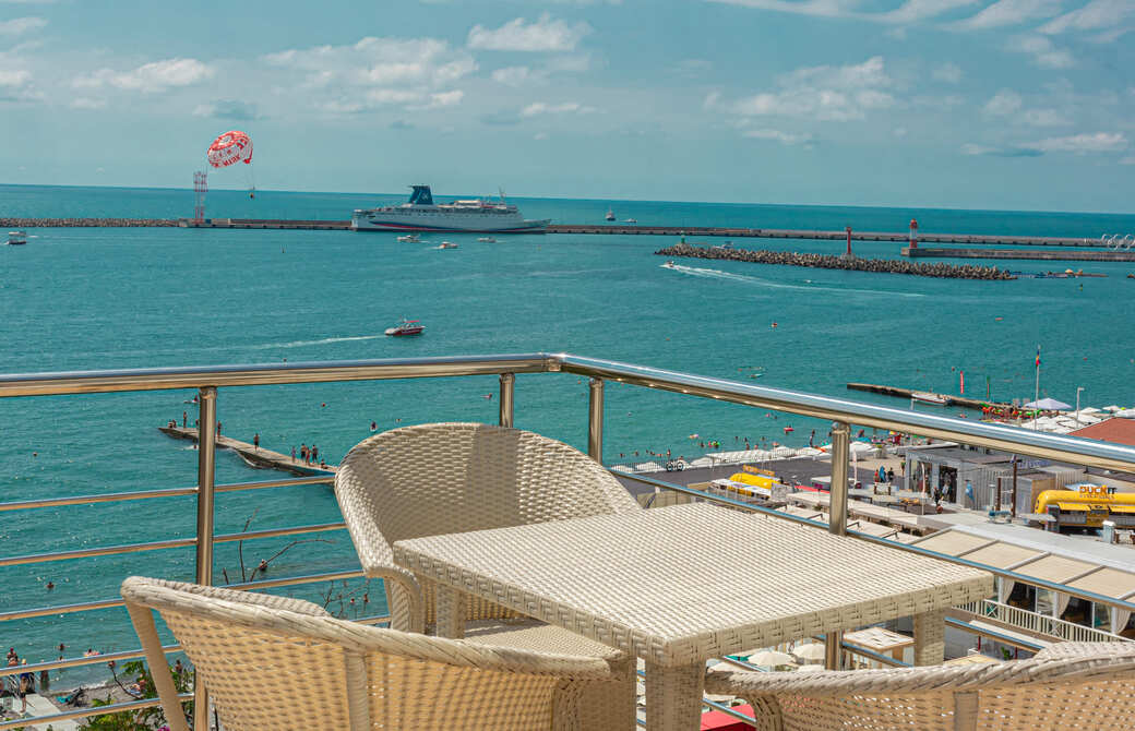 Пятиэтажное здание отеля с лифтом, находится в 300 метрах от морского побережья. Жилой фонд, рассчитанный на 130 человек, предлагает отдыхающим однокомнатные номера разной категории — от Эконома до Сьюта и Люкса. В номерах стильный современный интерьер, выдержанных в светлых тонах с включением мраморных элементов. Каждый номер независимо от степени комфорта оснащен санузлом с душем, кондиционером и укомплектован необходимой техникой — есть телевизор, фен, холодильник. В Студиях оборудована удобная мини-кухня, номера повышенной комфортности оборудованы дополнительной техникой, из ряда комнат открываются панорамные виды на морское побережье.