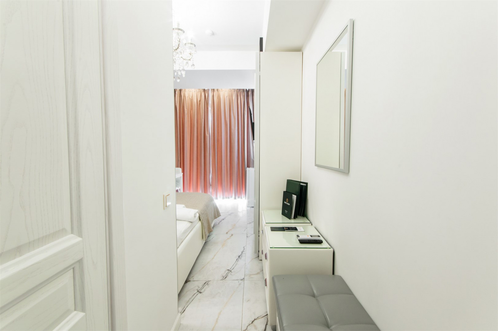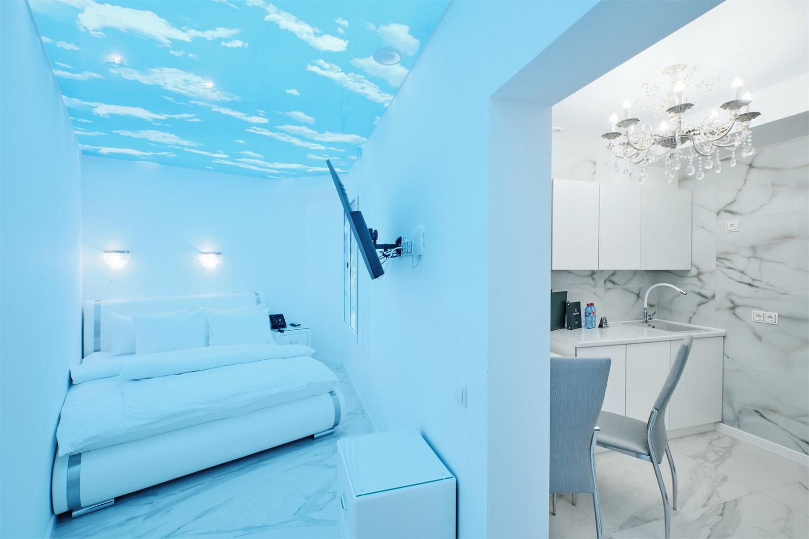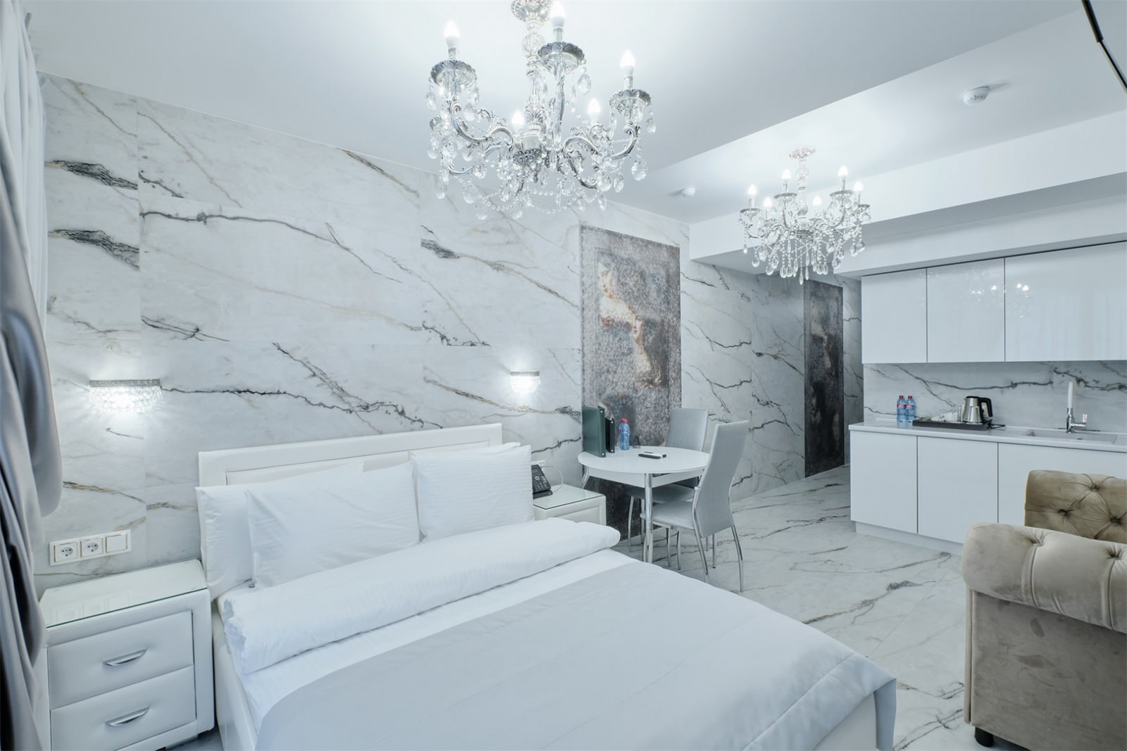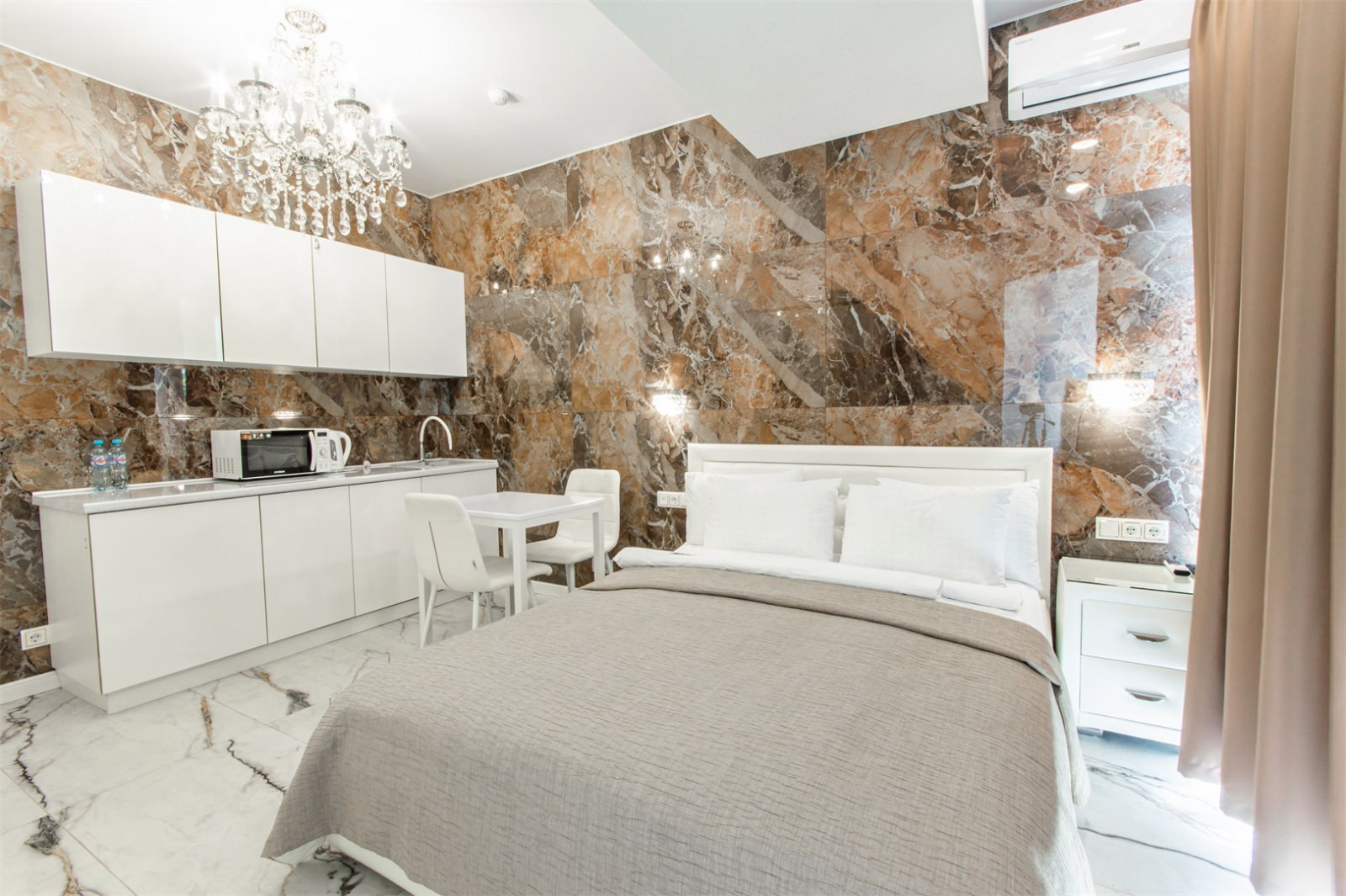 Однокомнатный двухместный номер с кухней. номере приточная вентиляция и вытяжка. Площадь номера — 22 кв.м. Предназначен для комфортного размещения 1-2 человек. Дополнительные места в номере не предусмотрены. Посещение термальной зоны SPA-центра «Цветок Одиссея» включено в стоимость номера. Проживание детей до 5 лет бесплатно.