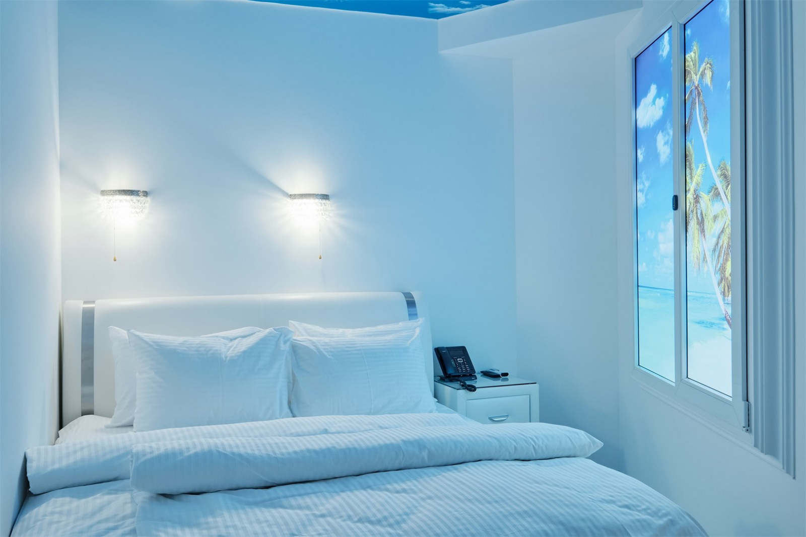 Светлый номер с имитацией окна (возможность регулирования освещения).В номере приточная вентиляция и вытяжка. Площадь номера — 15 кв. м. Предназначен для комфортного размещения 1-2 человек. Дополнительные места в номере не предусмотрены. Посещение термальной зоны SPA-центра «Цветок Одиссея» включено в стоимость номера. Проживание детей до 5 лет бесплатно.
