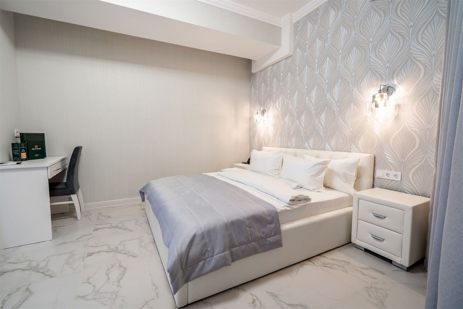 Комфортный номер «Делюкс» ,в котором каждый наш гость сможет расслабиться и почувствовать себя как дома. В просторных апартаментах площадью 39,5 кв.м гостям гарантирован качественный отдых. В номере предусмотрено 1 дополнительное место. Предназначен для комфортного размещения 2-3 человек. Посещение термальной зоны SPA-центра «Цветок Одиссея» включено в стоимость номера. Проживание детей до 5 лет бесплатно.