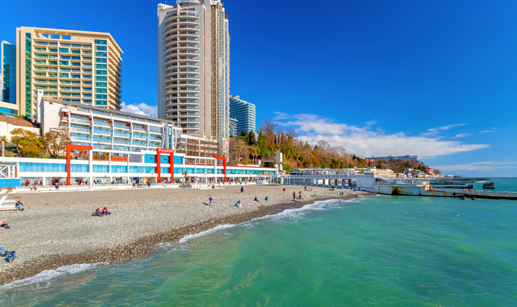 Самолетом до аэропорта Адлер, далее на автобусе №105, 105с, 105э до остановки «Гостиница Сочи». Затем до отеля пешком 500 м.