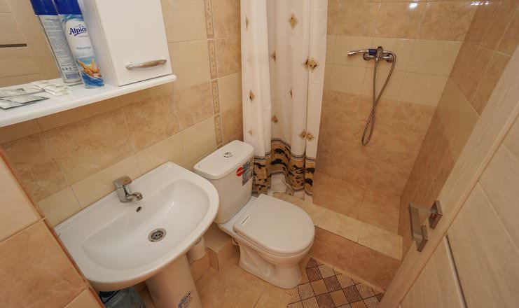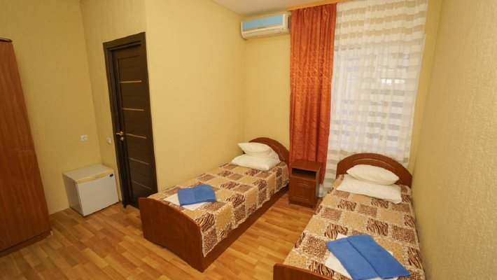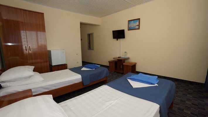 В номере установлены три одноместные кровати, телевизор, кондиционер, душевая кабина и другие удобства.