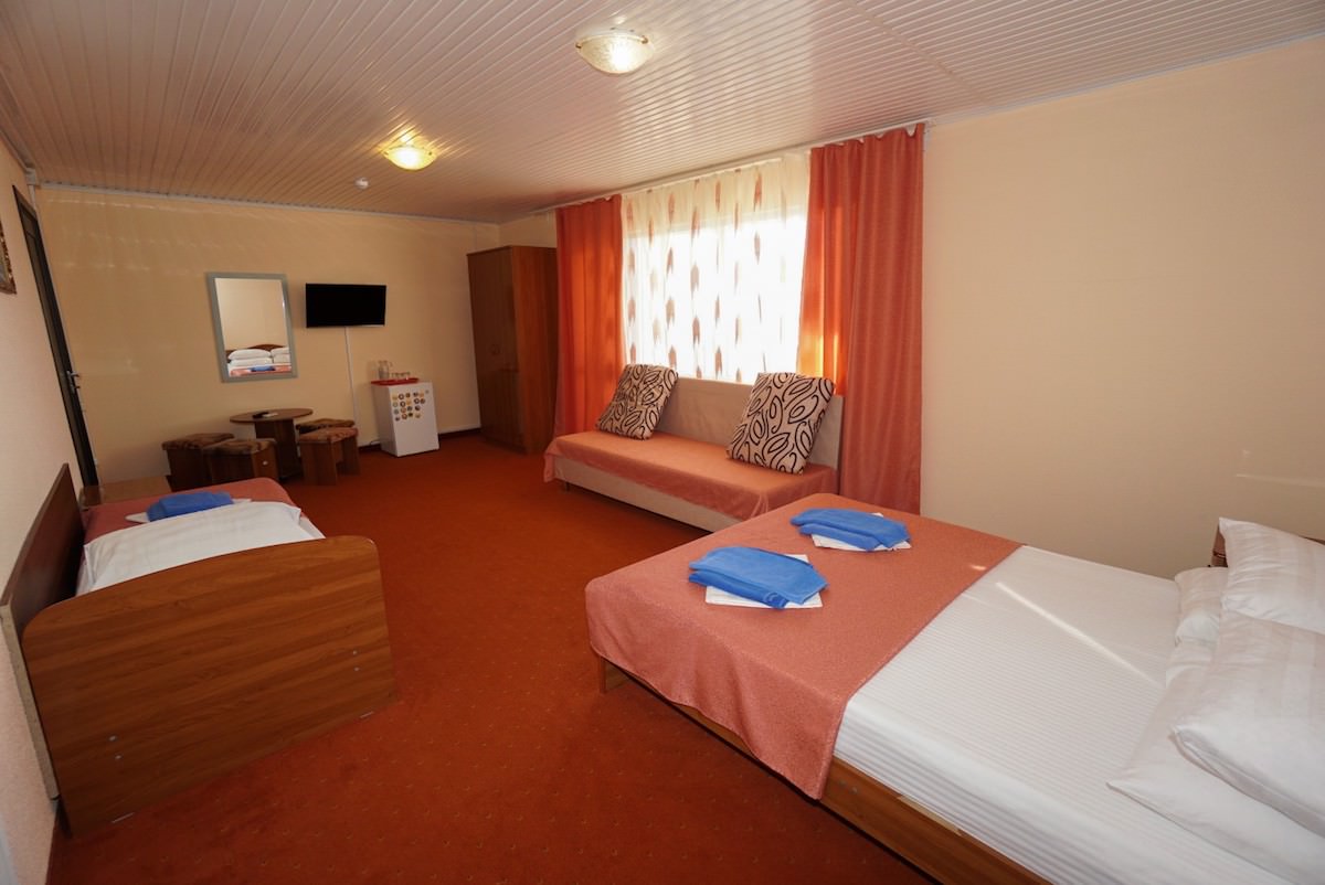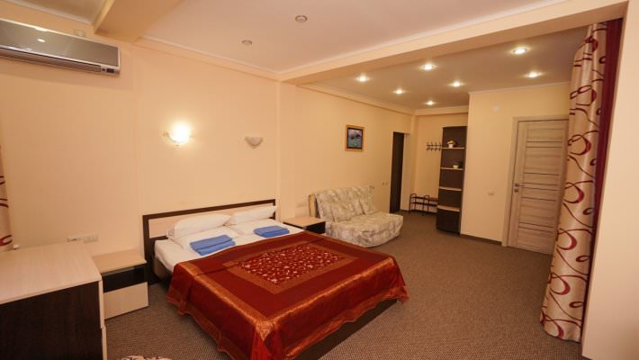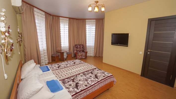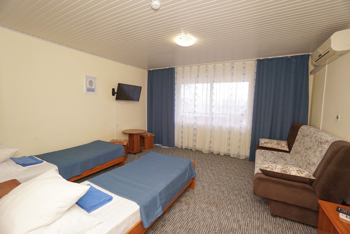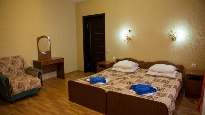 Данный номер подготовлен для комфортного размещения трех гостей. Для них есть современная мебель и необходимая техника.