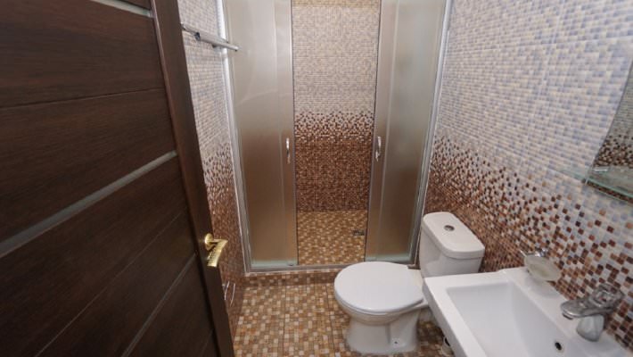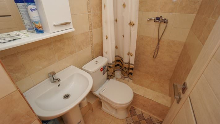 Ванная комната оснащена душевой кабиной. Из технического оснащения есть телевизор, холодильник, кондиционер.