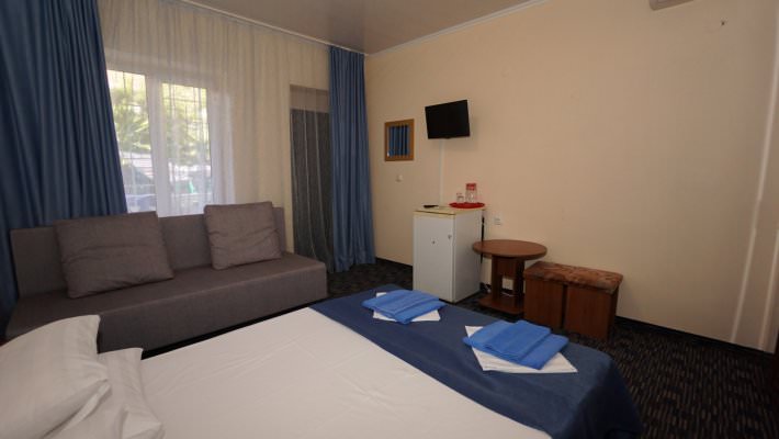 Трехместный номер категории стандарт имеет балкон и вид на море.