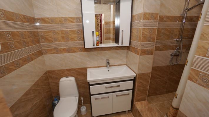 Из технического в наличии телевизор, кондиционер, холодильник. В ванной комнате установлен душ.