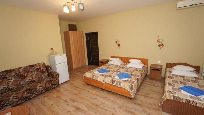 Номера такого типа имеют спальню с одной двуспальной и двумя односпальными кроватями, ванную комнату с душевой кабиной.