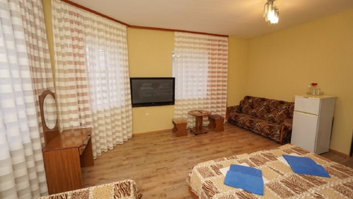 Для них есть две односпальные или одна двуспальные кровати. В наличии телевизор, кондиционер, холодильник.