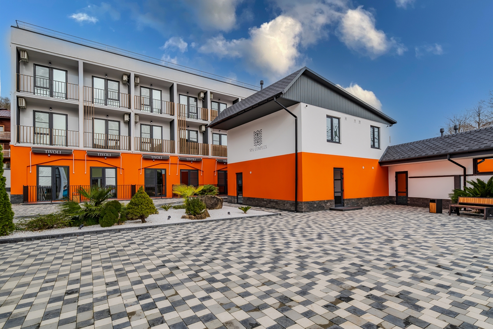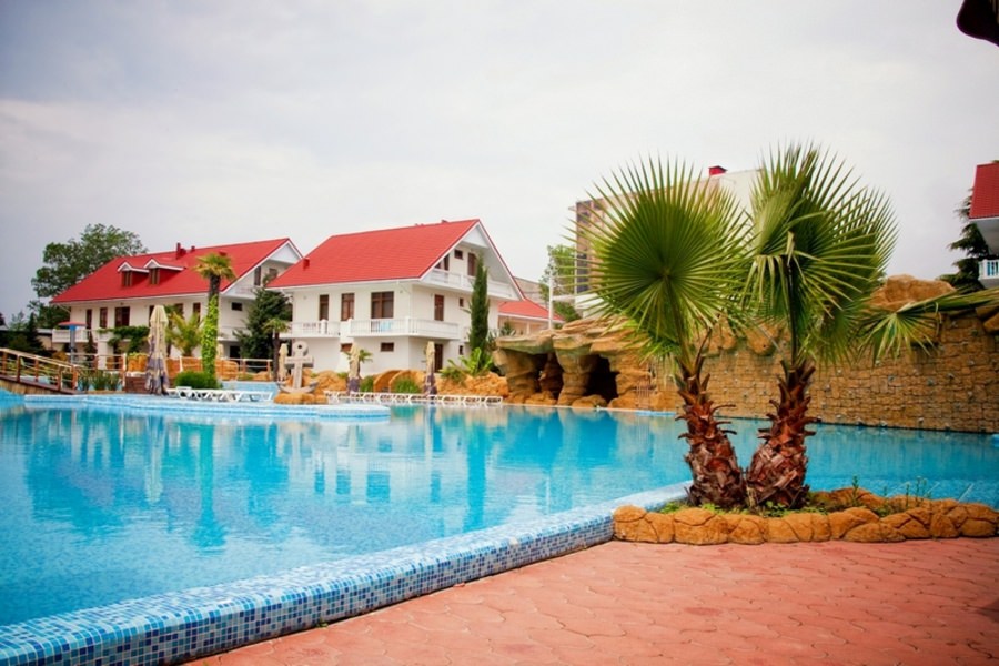 Здесь есть 8 зданий, которые окружены экзотическими растениями, беседками и зонами отдыха. Разместиться предлагается в номерах разных категорий с комфортной мебелью и необходимой бытовой техникой. Для постояльцев открыты бассейн с пресноводной водой, массажный кабинет, прачечная, караоке-бар, столовая, бар, экскурсионное бюро, библиотека. Питание проходит комплексное, три раза в день.