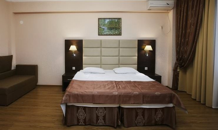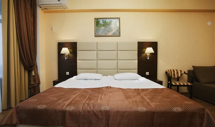 Номер категории стандарт оснащен 2 полутороспальными кроватями и кресло-диваном. Для гостей есть кондиционер, телевизор и мини-холодильник.