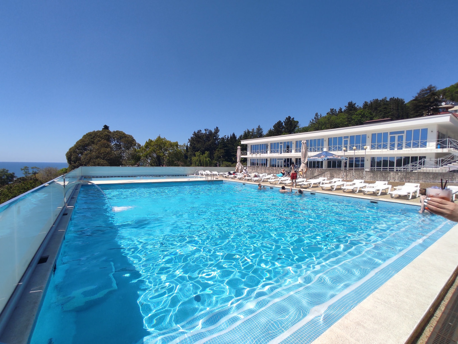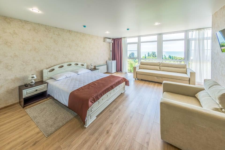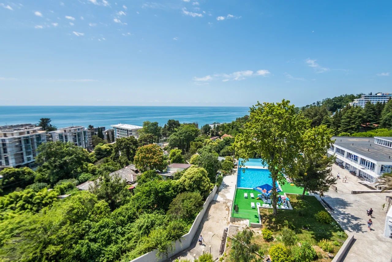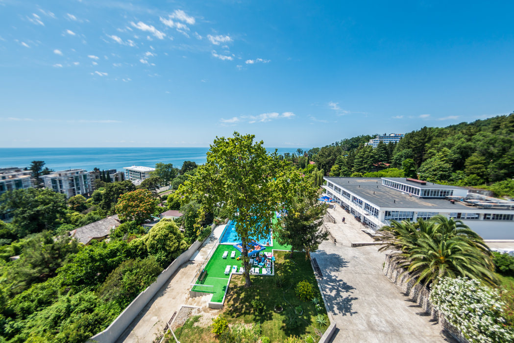 Самолетом до аэропортаАдлер, далее автобусом №105, 105с до автовокзала Сочи, далее пересадка на автобус №75,76,77 до остановки «Пансионат Лучезарный», далее пешком до отеля 480 м.