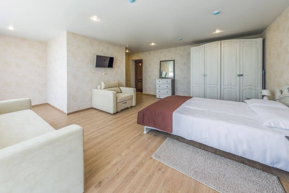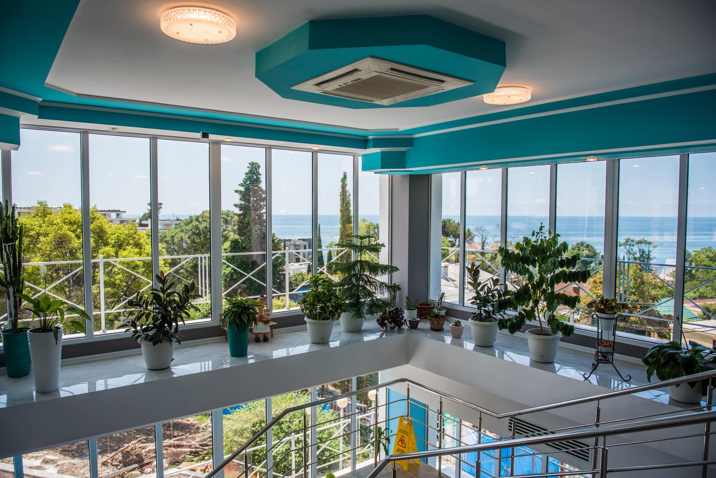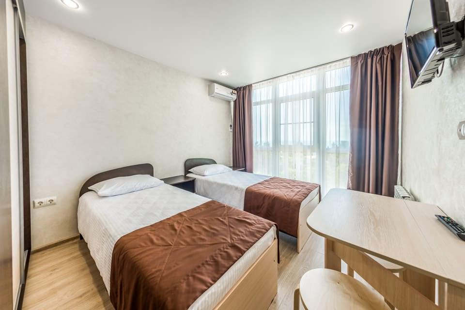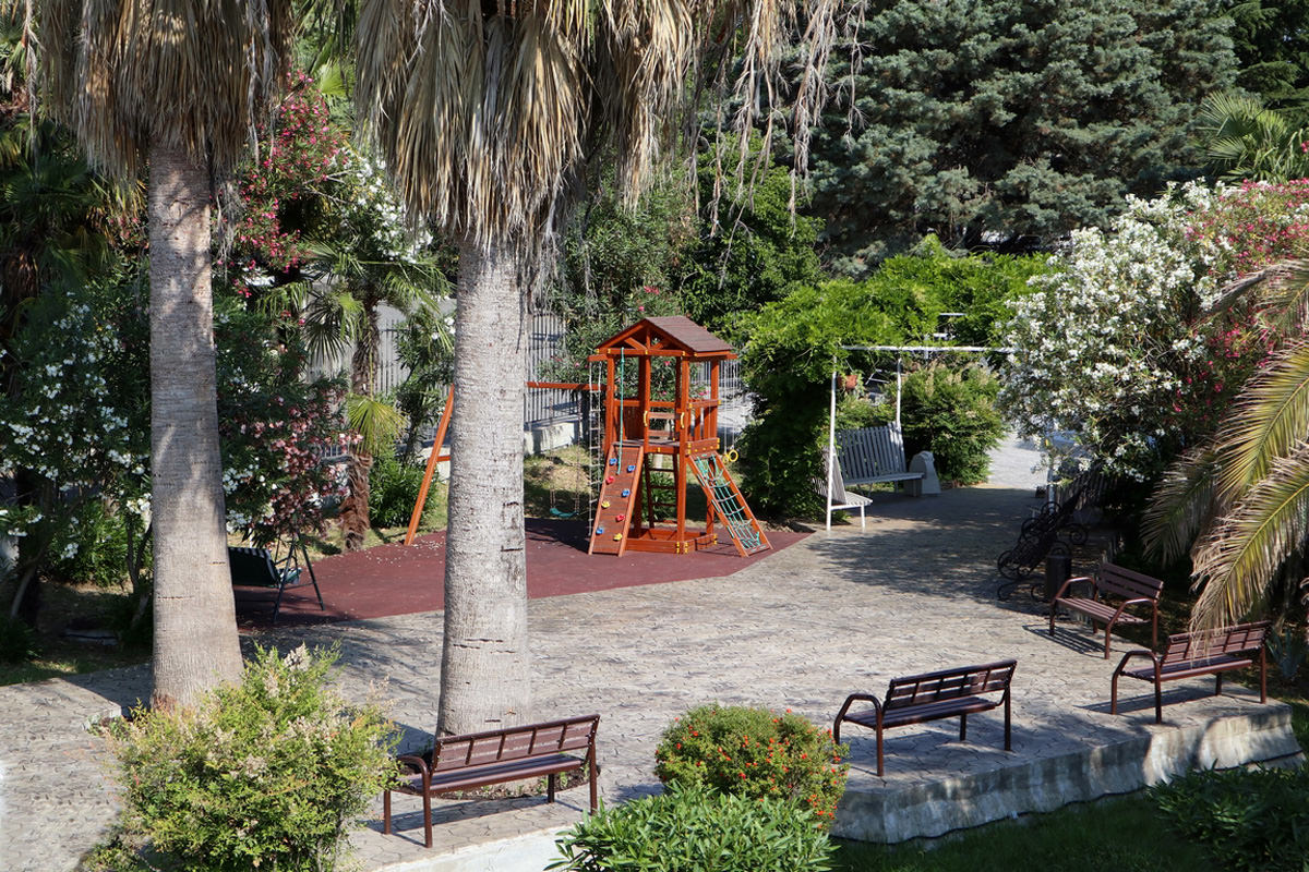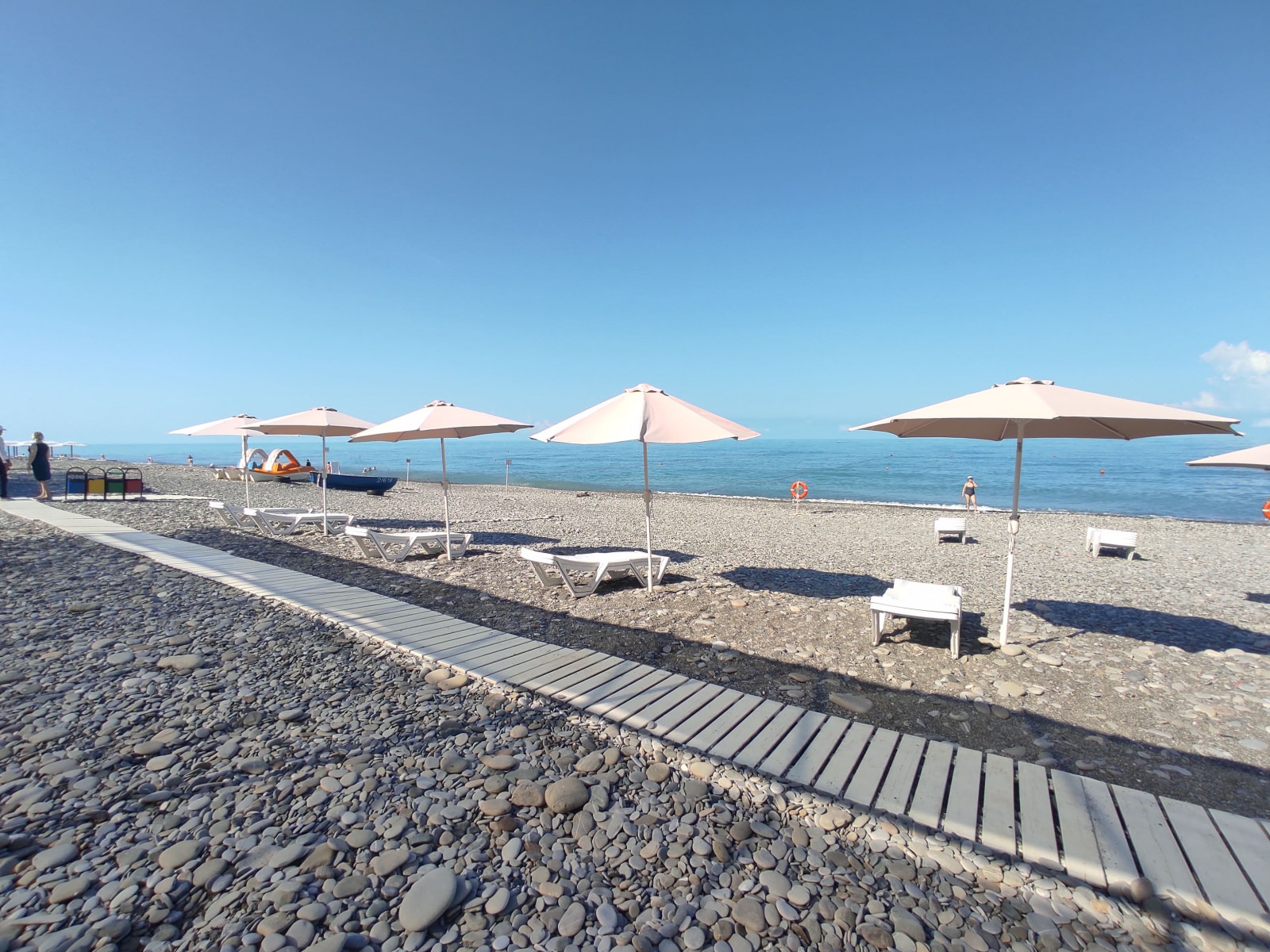 Самолетом до аэропортаАдлер, далее автобусом №105, 105с до автовокзала Сочи, далее пересадка на автобус №75,76,77 до остановки «Пансионат Лучезарный», далее пешком до отеля 480 м.