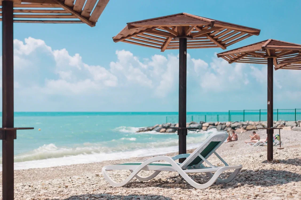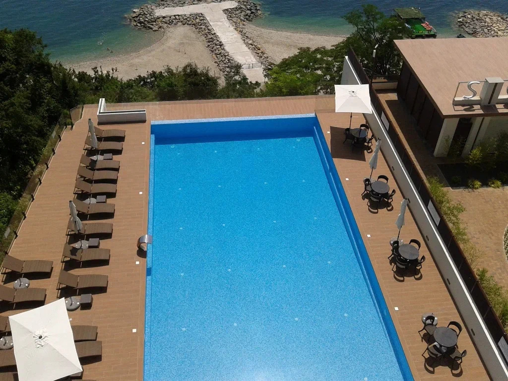 У отеля собственный охраняемый пляж, расположенный в 150 метрах от жилого корпуса, добраться можно на фуникулере или по лестнице. Пляж покрыт галькой, а на побережье установлены раздевалки, душевые, есть шезлонги и зонтики, работает бар. Отдыхающие могут арендовать катамараны, гидроциклы и сапы.