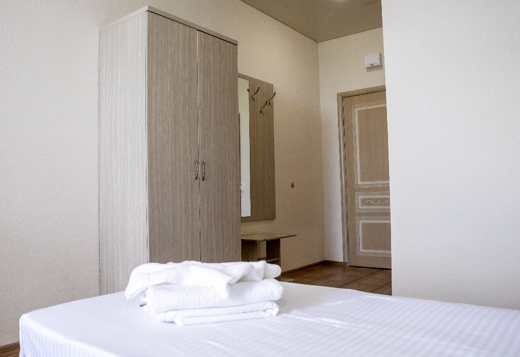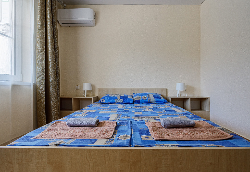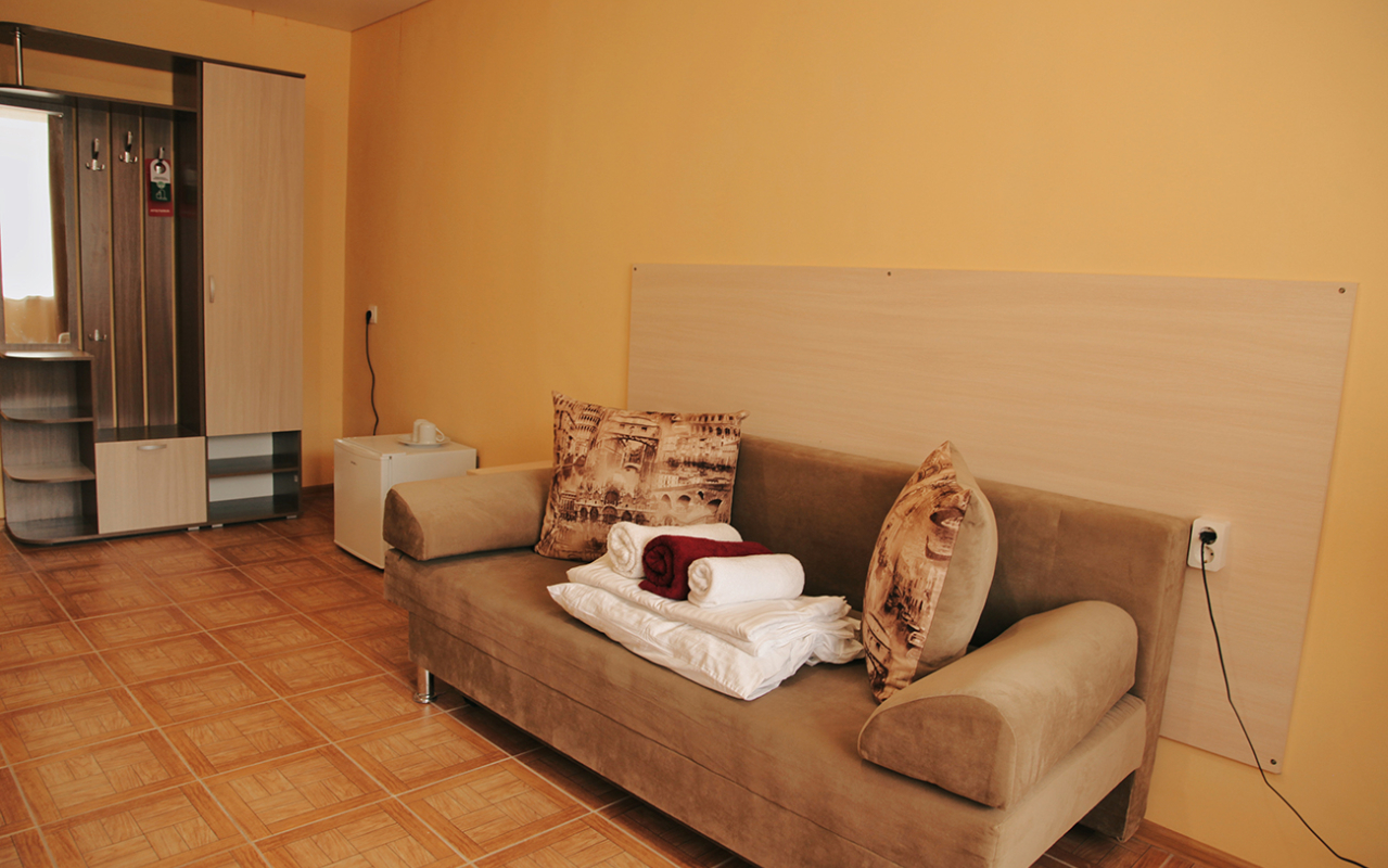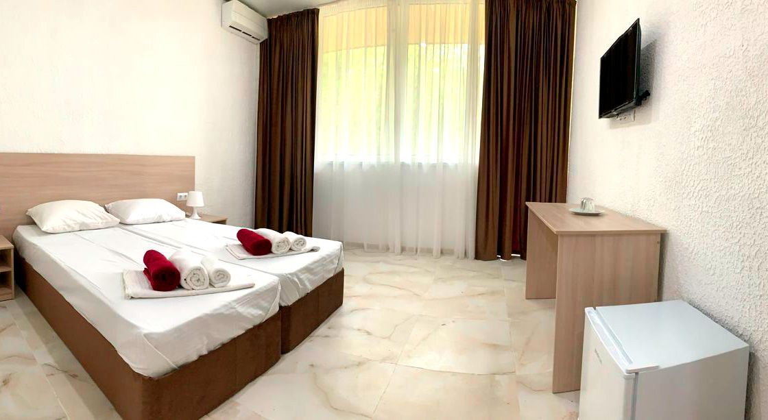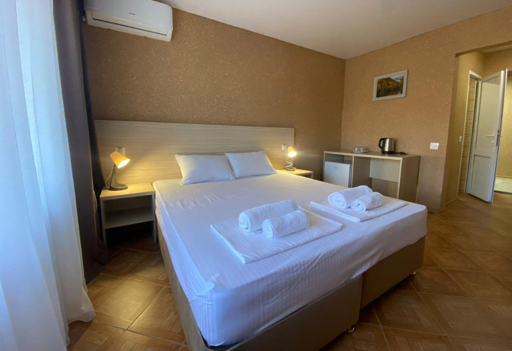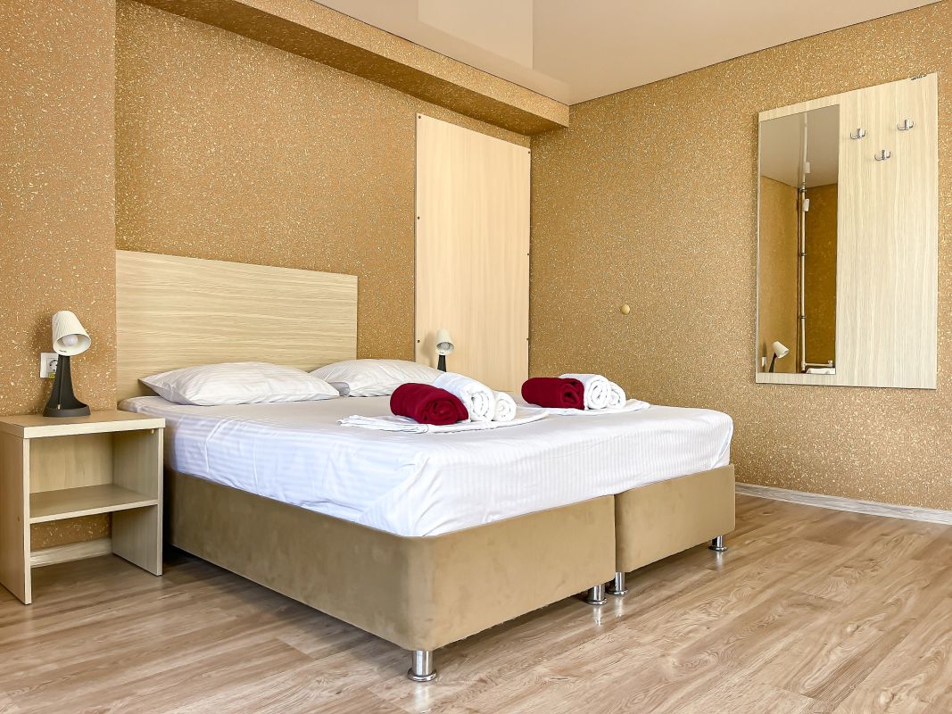 Площадь номера - 20-25 кв.м. 1 комната. 2 осн. места. В номере: телевизор; холодильник; кондиционер; душ; 1-спальные/ 2-спальная кровать; балкон (в части номеров); санузел. 1 доп. место:
