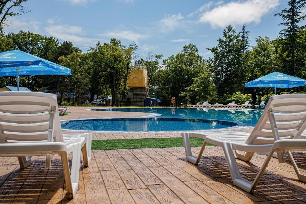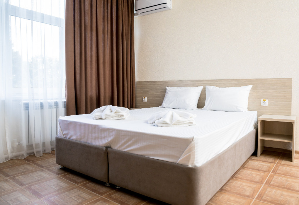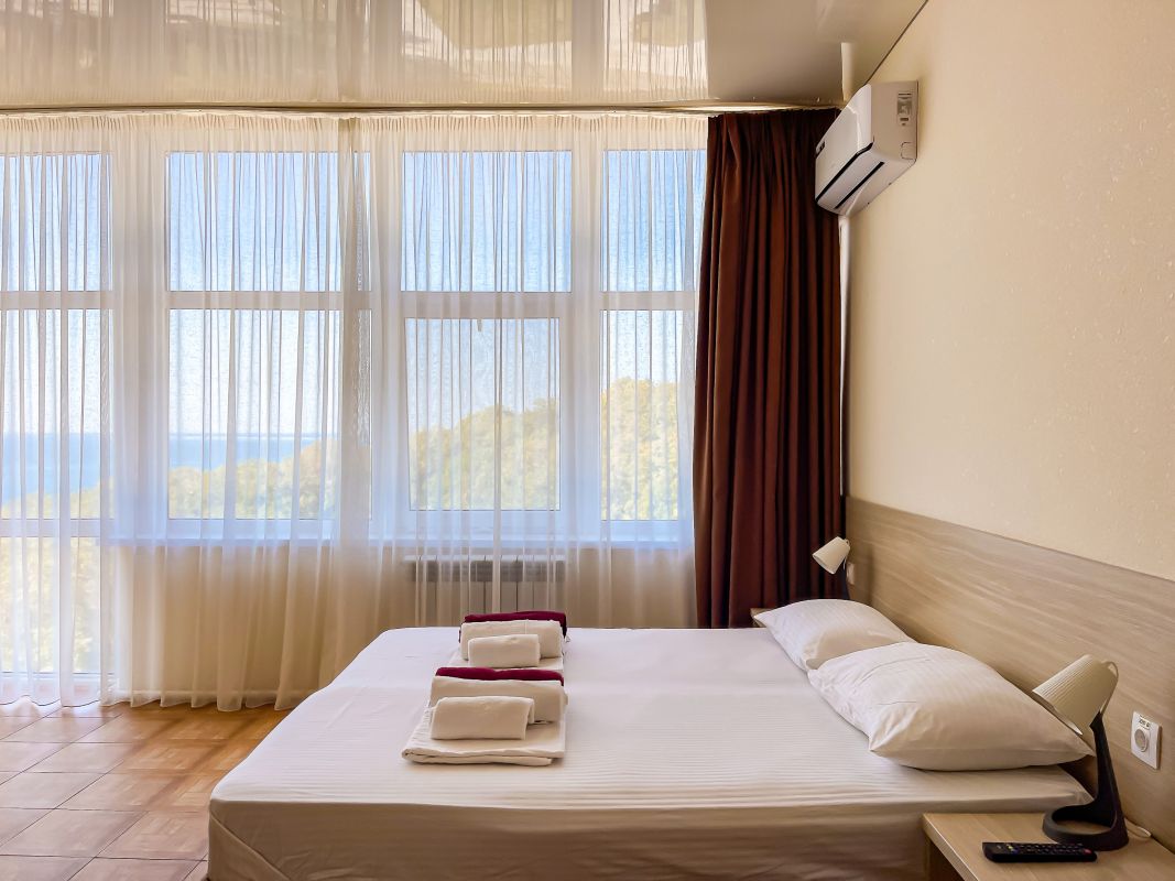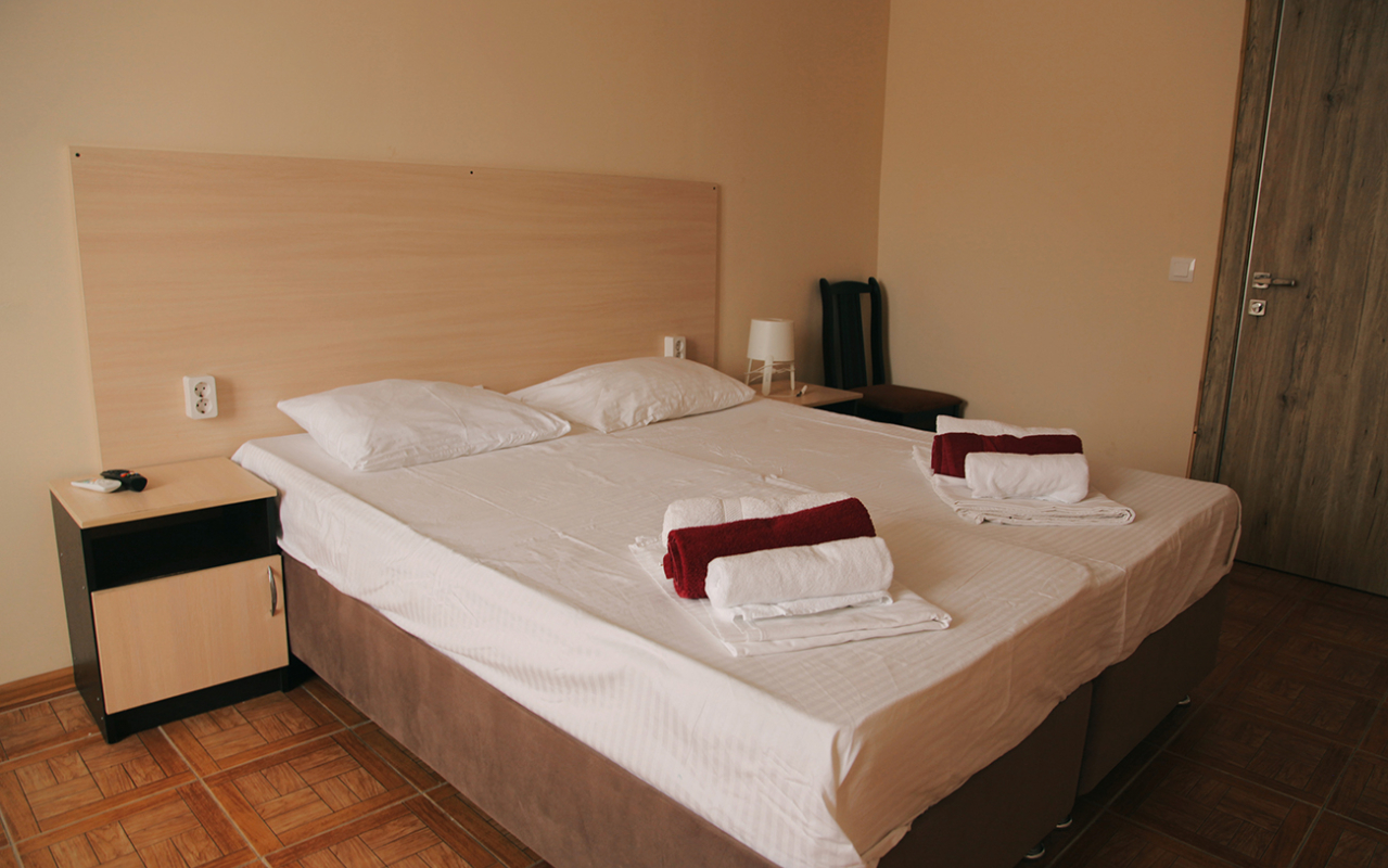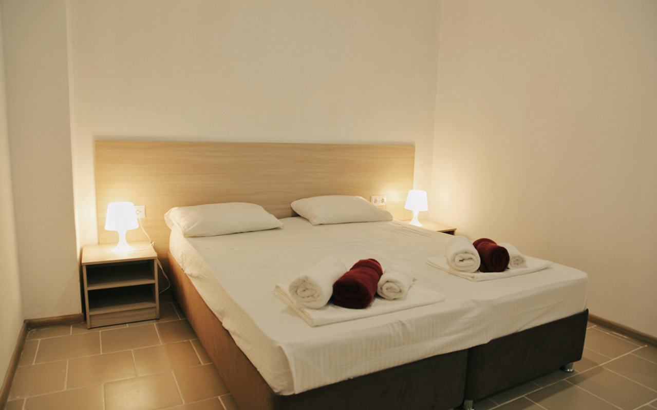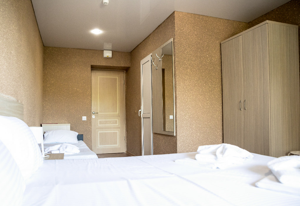 Площадь номера - 20-25 кв.м. 1 комната. 2 осн. места. В номере: телевизор; холодильник; кондиционер; душ; 1-спальные/ 2-спальная кровать; балкон (в части номеров); санузел. 1 доп. место: