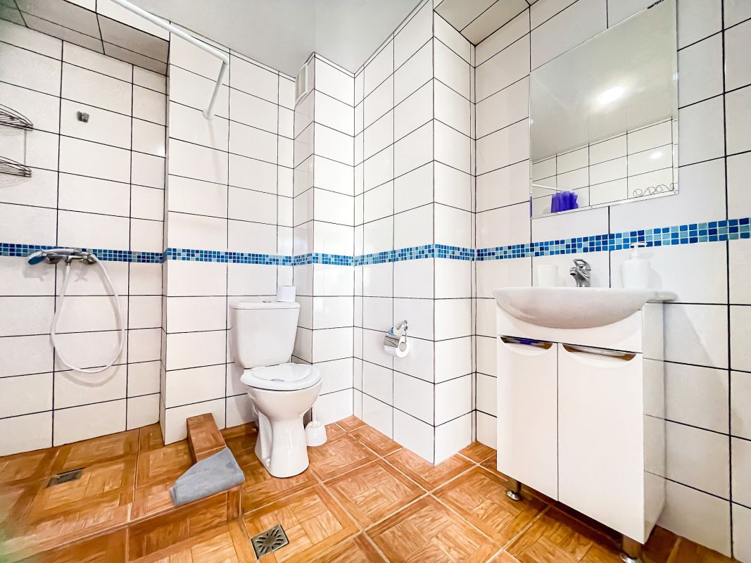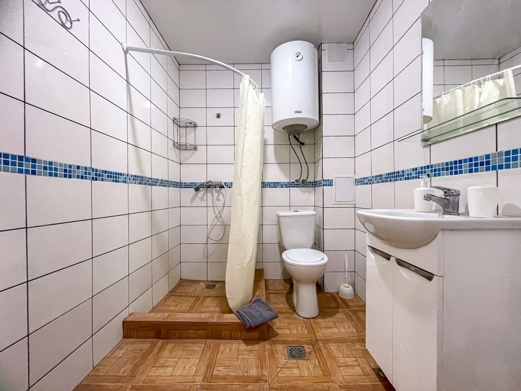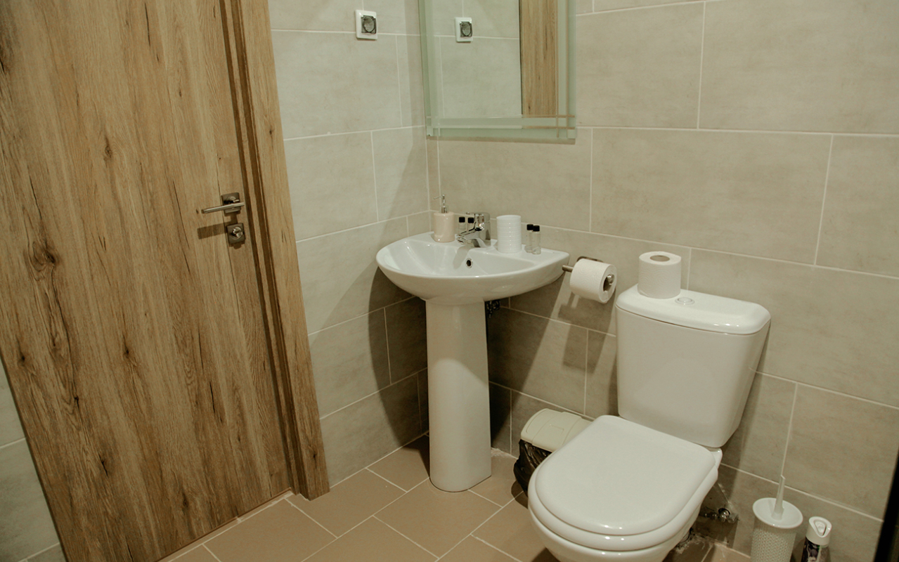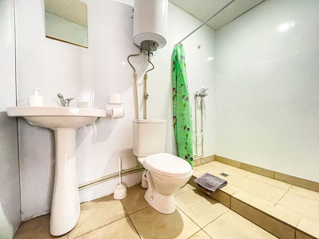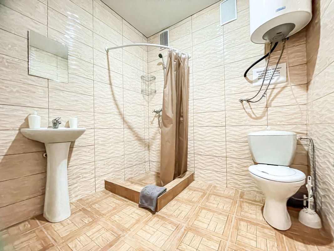 Площадь номера - 52 кв.м. Возможно размещение 3-х человек на основных местах + 2 дополнительных места.. В номере: душ, туалет, ТВ, холодильник, кондиционер.