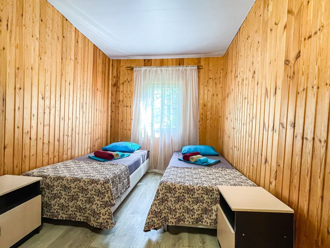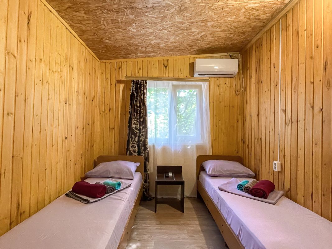 Площадь номера - 19 кв.м. Возможно размещение 2-х человек на основных местах + 2 дополнительных места.. В номере: душ, туалет, ТВ, холодильник, кондиционер, две раздельные кровати.