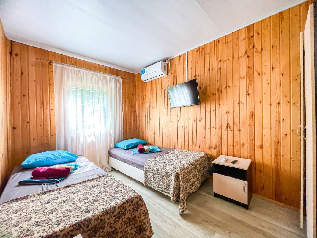 Площадь номера - 20 кв.м. Возможно размещение 3-х человек на основных местах + 1 дополнительное место.. В номере: душ, туалет, ТВ, холодильник, кондиционер, односпальная кровать, две раздельные кровати.