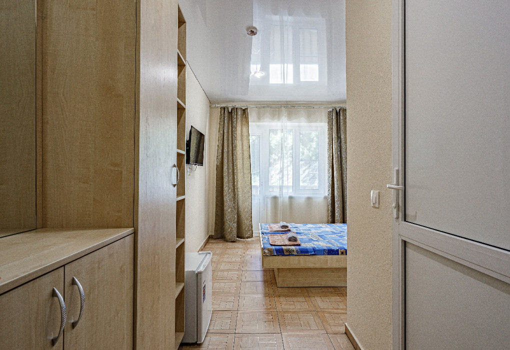 Площадь номера - 11 - 14 кв.м. Возможно размещение 1 человека на основном месте.. В номере: душ, туалет, ТВ, холодильник, кондиционер.