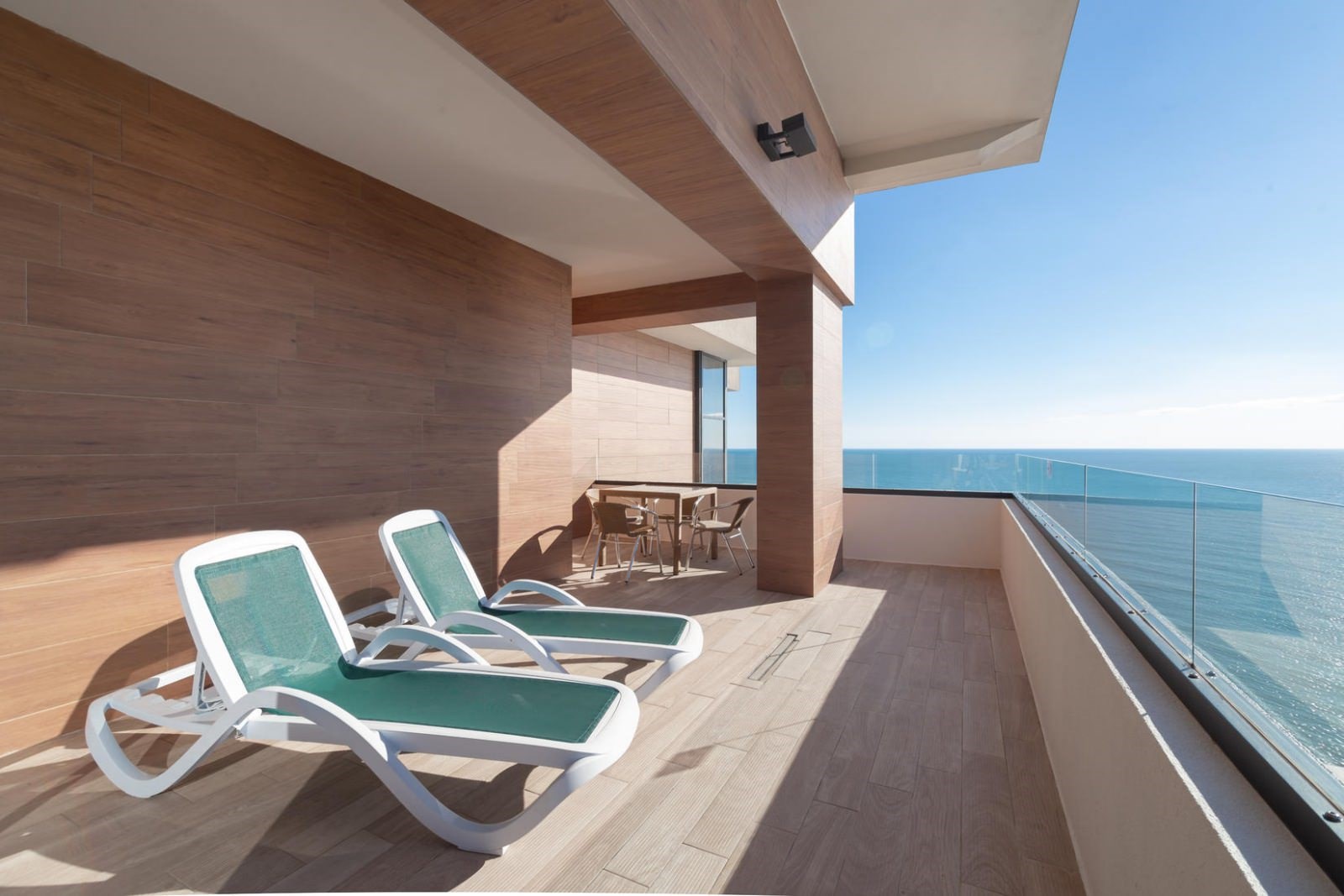 В таких номерах предусмотрен выход на террасу, оборудованную шезлонгами, с которой открывается великолепный вид на морской горизонт и горы.