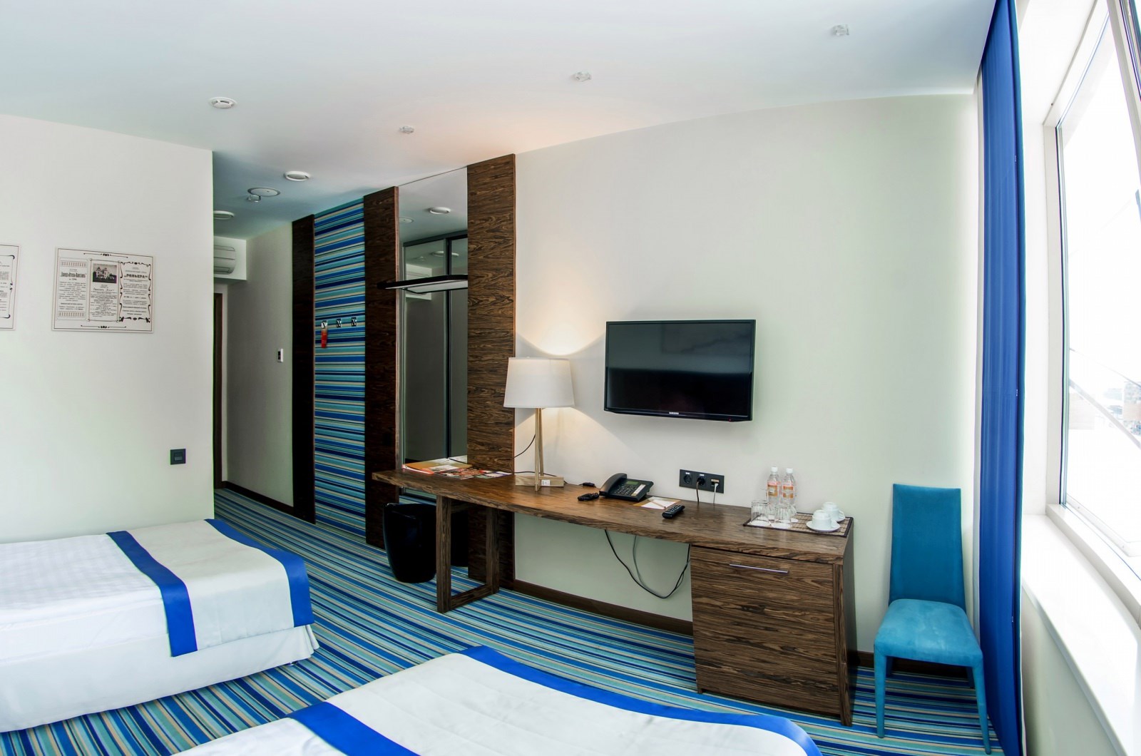 Помещение номера кондиционировано, оборудовано телевизором, телефоном и сейфом.