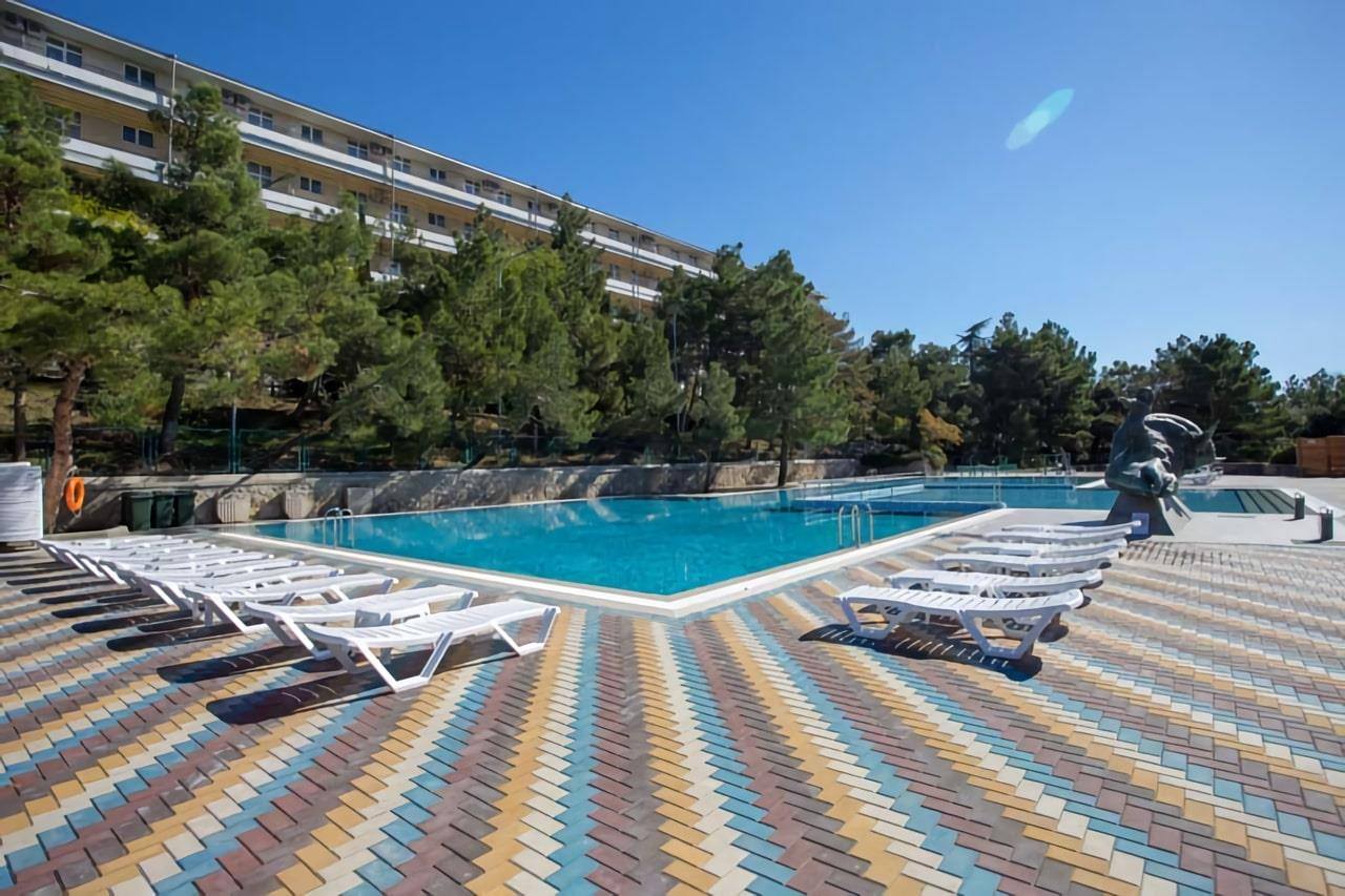 2 жилых корпусаРестораны и барыОткрытый бассейнПляжСпортивные площадкиКиноконцертный зал