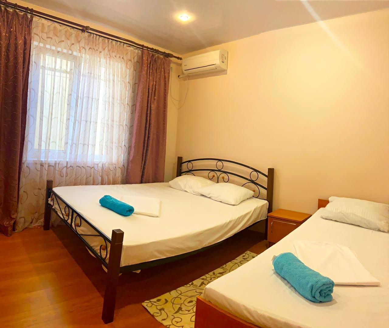 Номер люкс двухкомнатный семейный общей площадью 36 кв.м. для размещения до 4-х гостей (включая дополнительное место). Оснащение номера: двухспальная кровать, дополнительное место, телевизор, мини-холодильник, чайник, кондиционер, постельное белье и полотенца, ванная комната с душем.