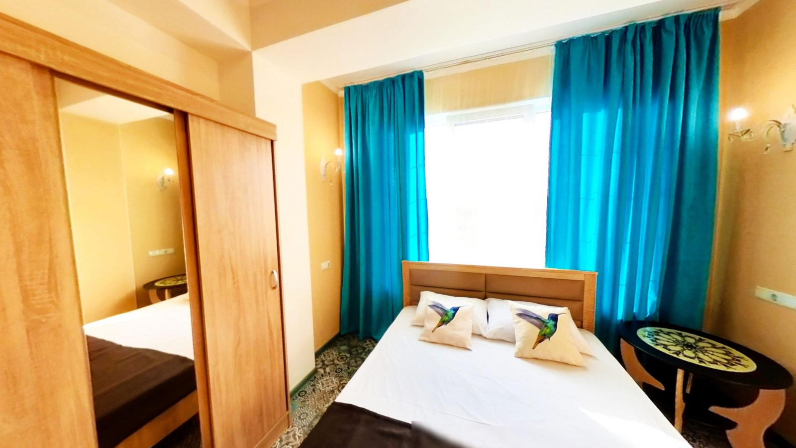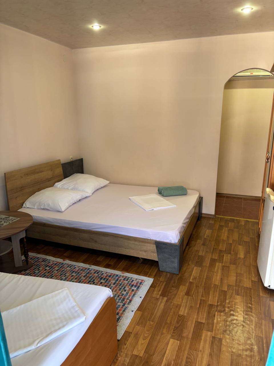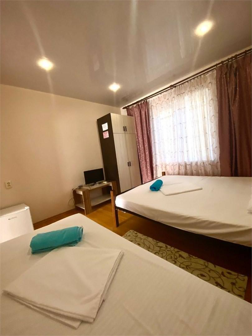 Номер стандарт общей площадью 14 кв.м. для размещения до 3-х гостей (включая дополнительное место). Оснащение номера: двухспальная кровать, дополнительное место- односпальная кровать, телевизор, мини-холодильник, кондиционер, постельное белье и полотенца, ванная комната с душем.