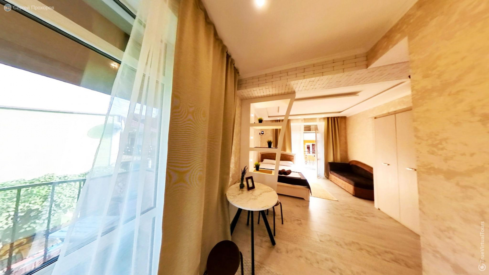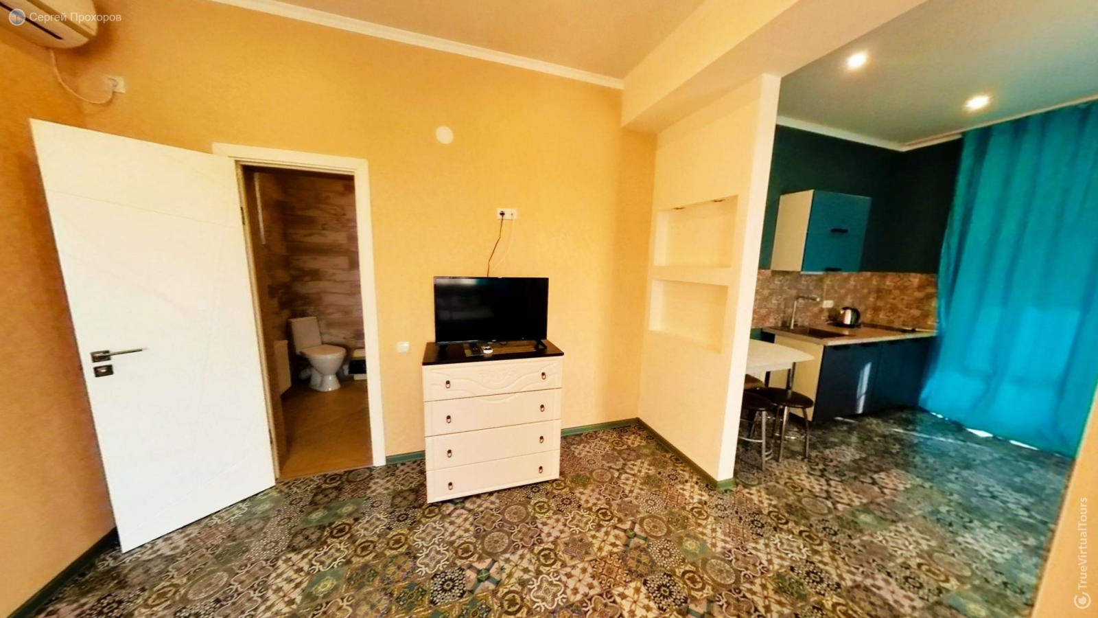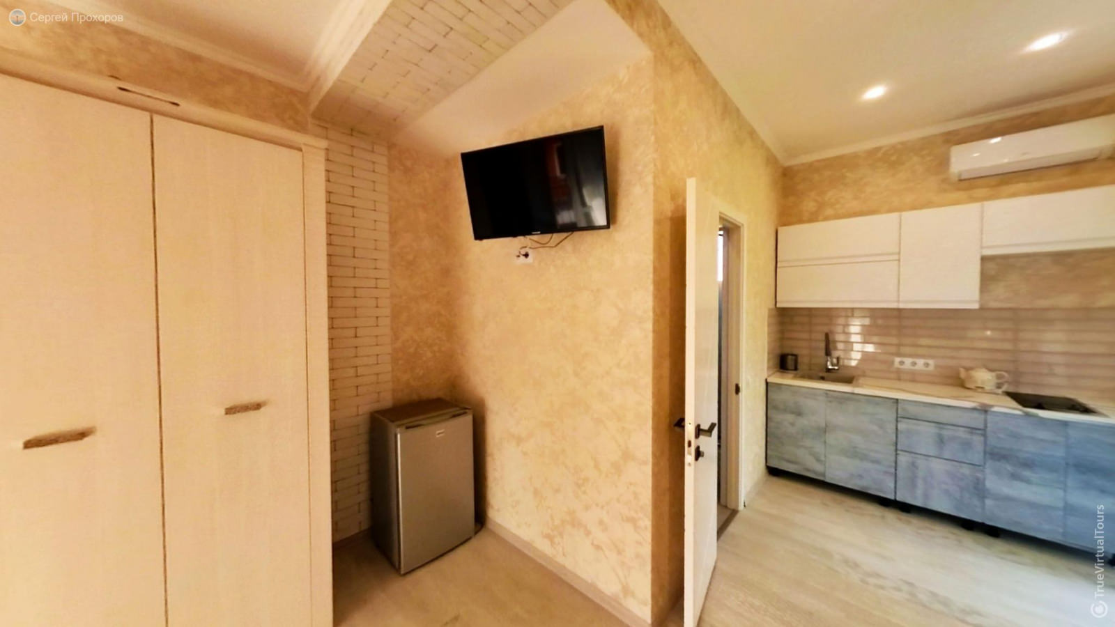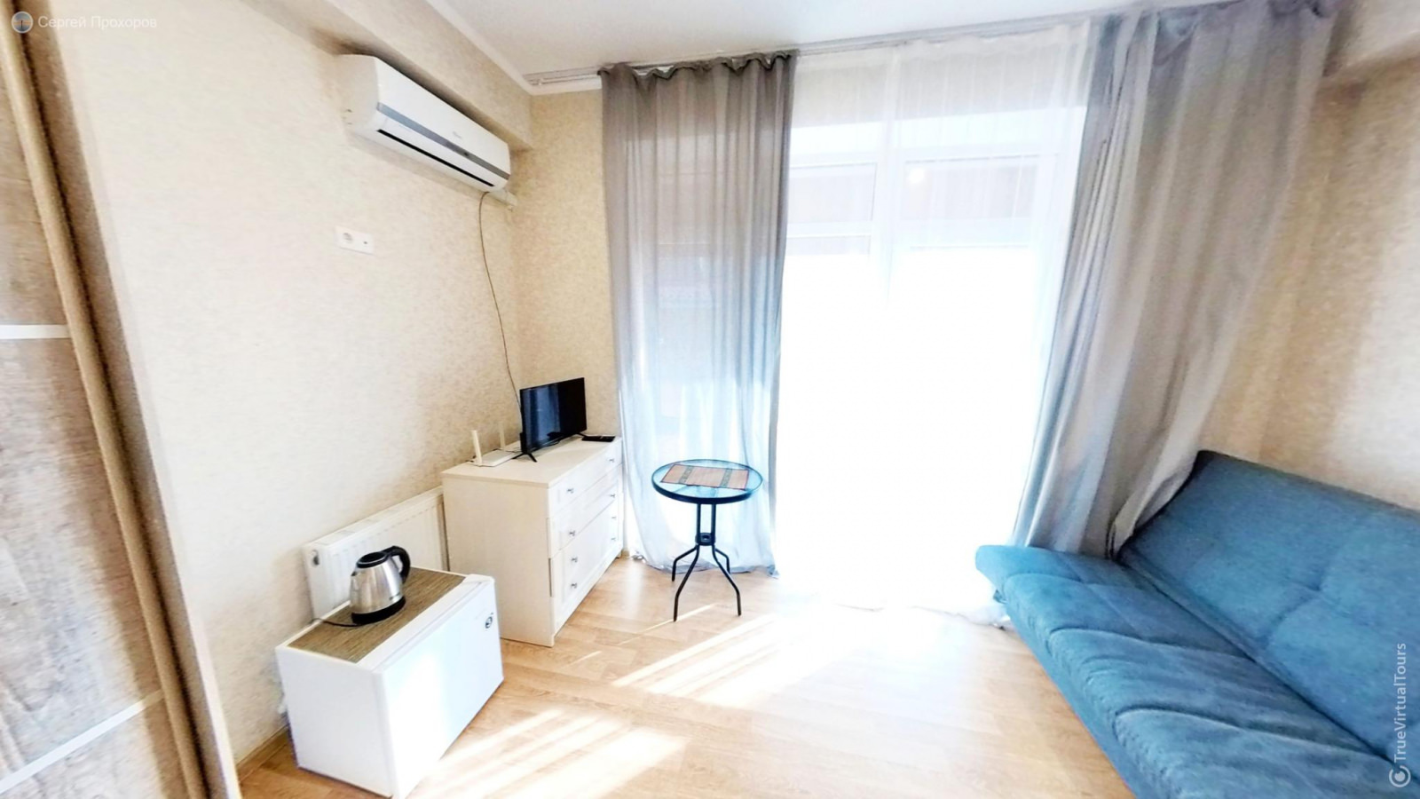 Номер студия с балконом общей площадью 29 кв.м. для размещения до 3-х гостей (включая дополнительное место). Оснащение номера: двухспальная кровать, дополнительное место- односпальная кровать, телевизор, оснащенная кухня, чайник, кондиционер, холодильник, электрическая плита, необходимая посуда, постельное белье и полотенца, ванная комната с душем.