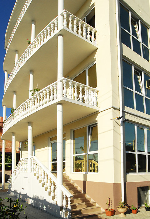 Поездом до ж/д вокзала г. Феодосии, далее 600 м до остановки «Магазин Электротовары», далее на автобусе № 4,4д до остановки «Лазурный берег», далее 420 м до гостевого дома.
