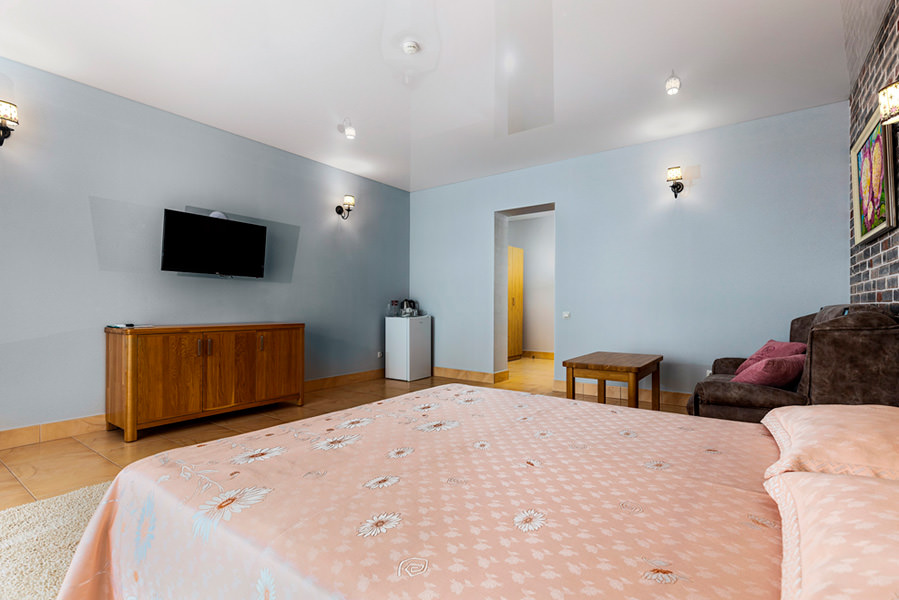 В дополнение к этому номер оснащен качественной мебелью, и продуманно оснащен различными бытовыми удобствами: так, чтобы гости чувствовали себя как дома и не чувствовали дискомфорт.