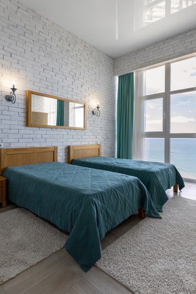 Прекрасный номер с видом на море для отдыха двоих гостей.