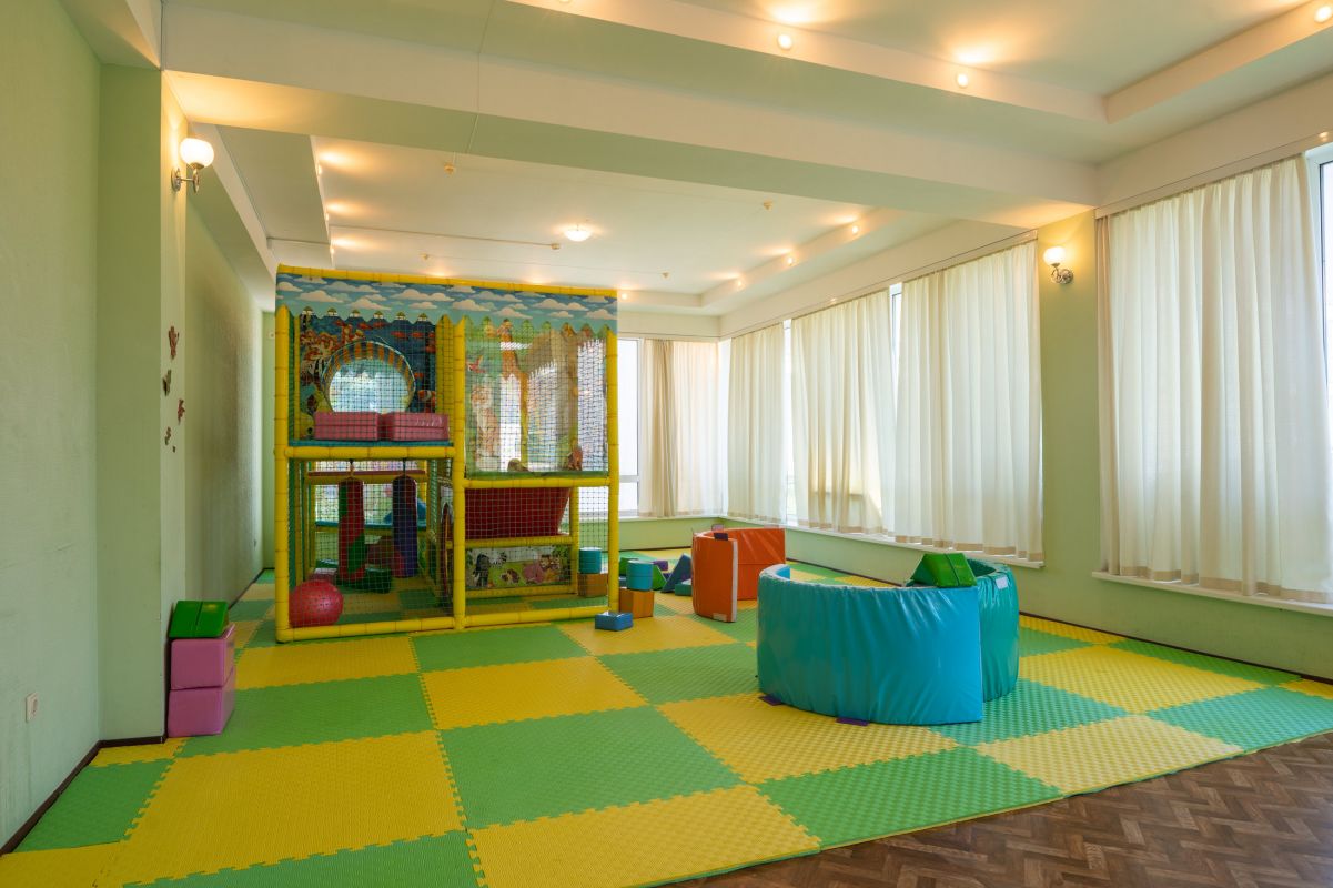 Дети смогут развлекаться в игровой зоне в помещении и на свежем воздухе на детской площадке.