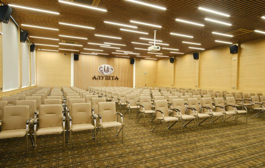 Санаторий Алушта приглашает в новый современный Конференц- холл «Алушта», где гостям помогут организовать практически любое мероприятие, от лекции — до семинара с кофе-брейком или презентации с фуршетом, а также с праздничным банкетом. Многофункциональная конструкция и разборная сцена дает возможность на высшем уровне провести мероприятия, от небольших деловых встреч — до семинаров для 250 гостей.