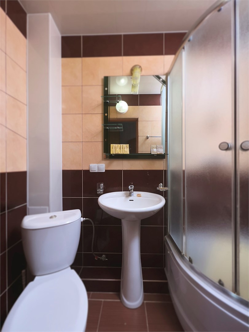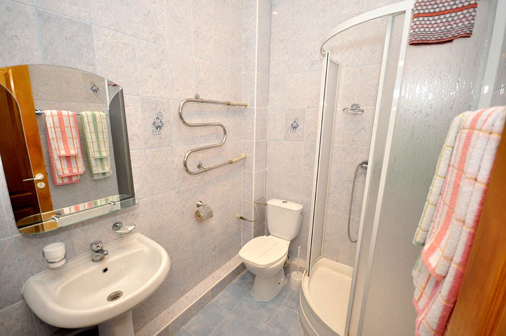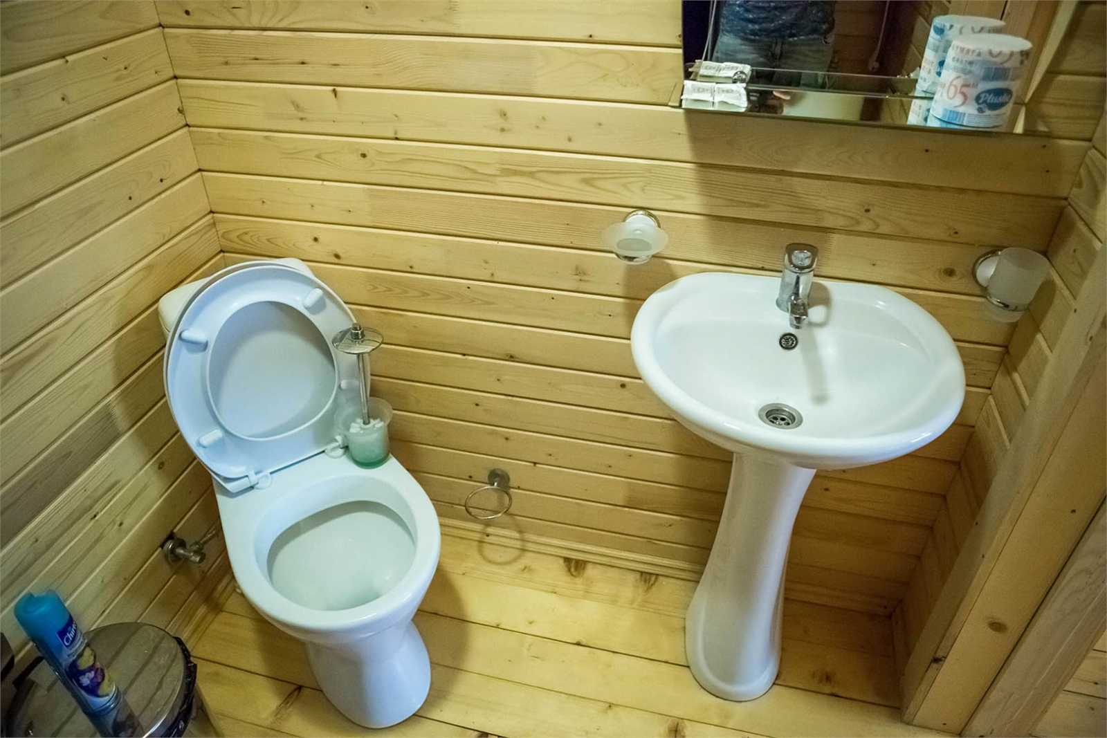 Каждый номер оборудован туалетной комнатой, где установлена современная сантехника, а также есть средства гигиены и полотенца.