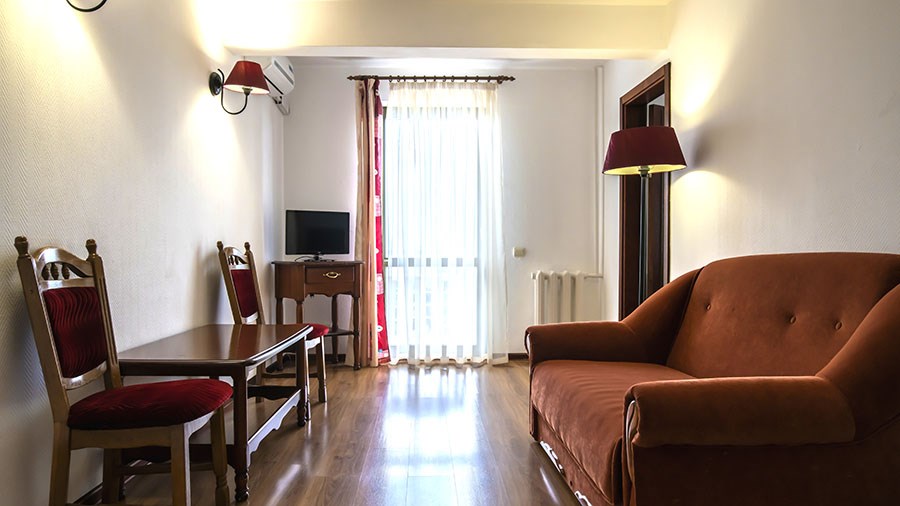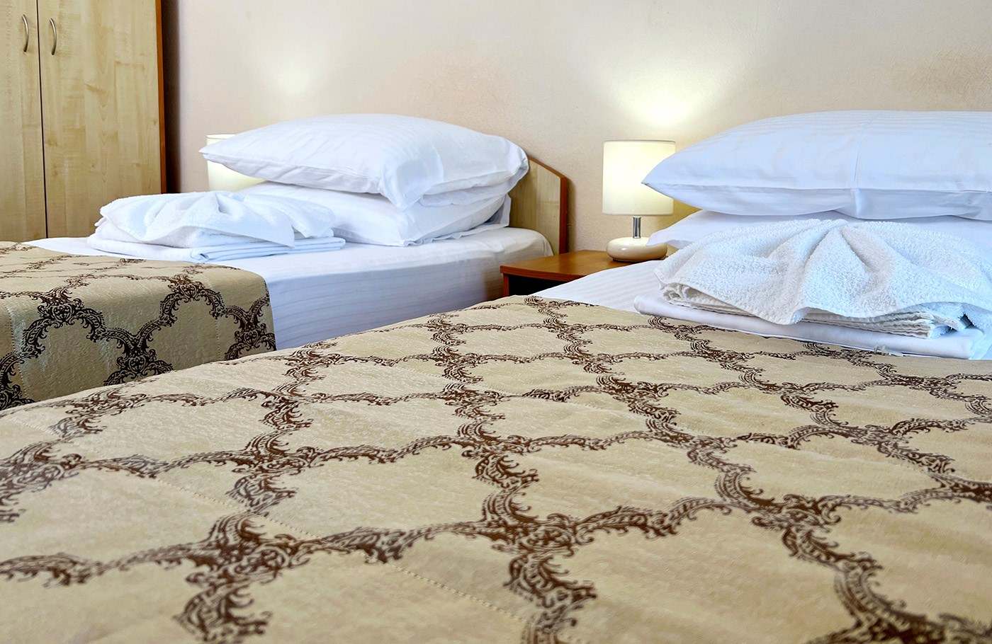 Большой номер для тех, кто привык к комфорту или путешествует с детьми. Здесь легко разместятся 4 человека. В номерах большая ванная комната, балкон и вторая комната.