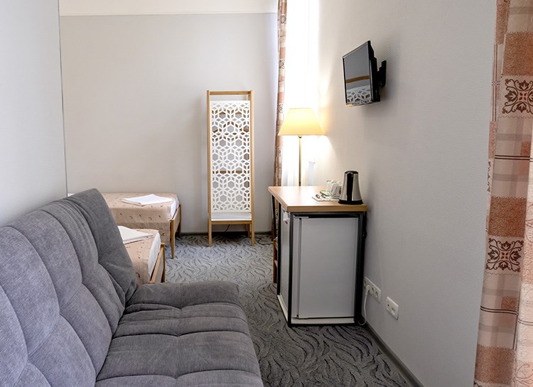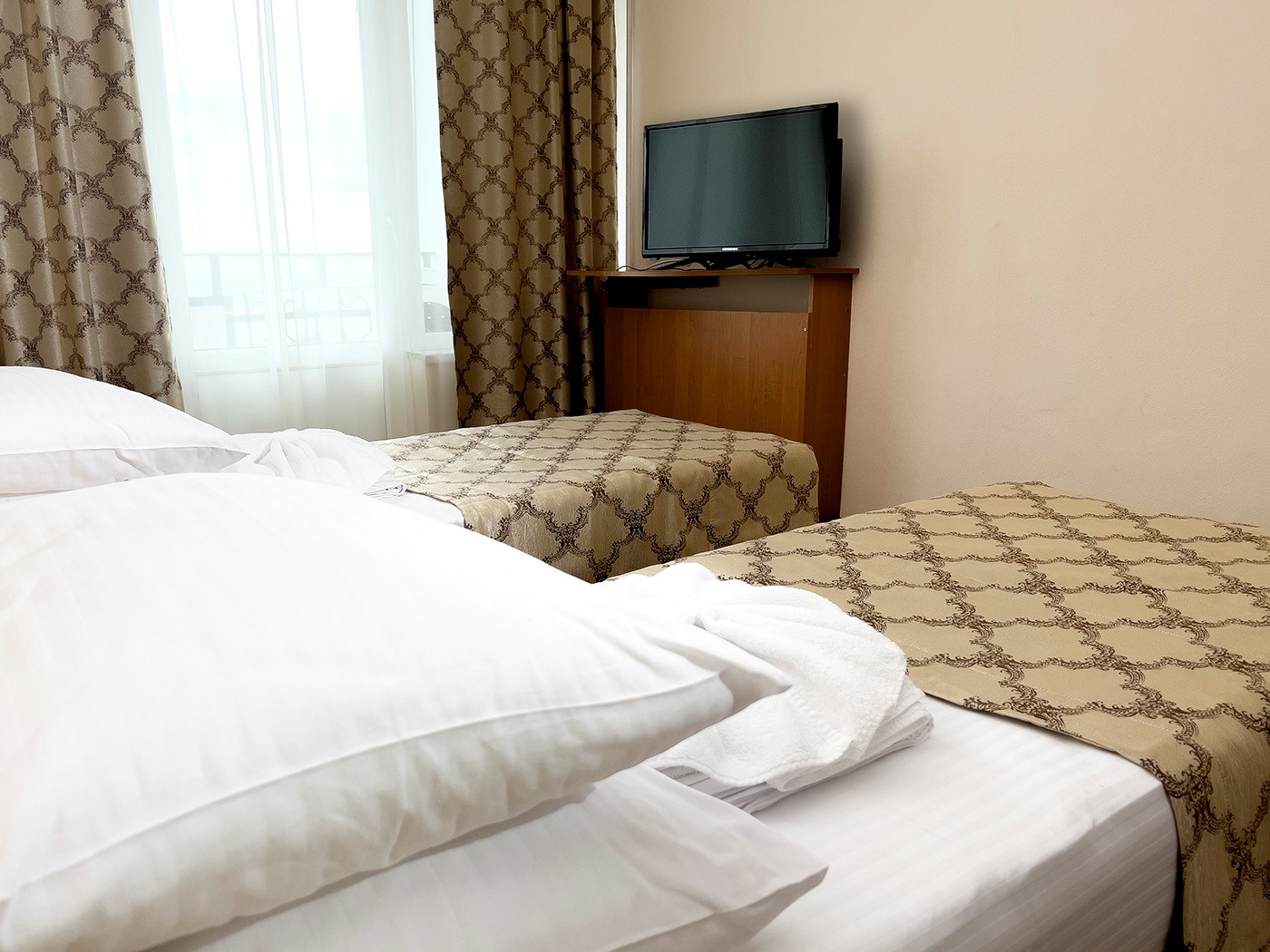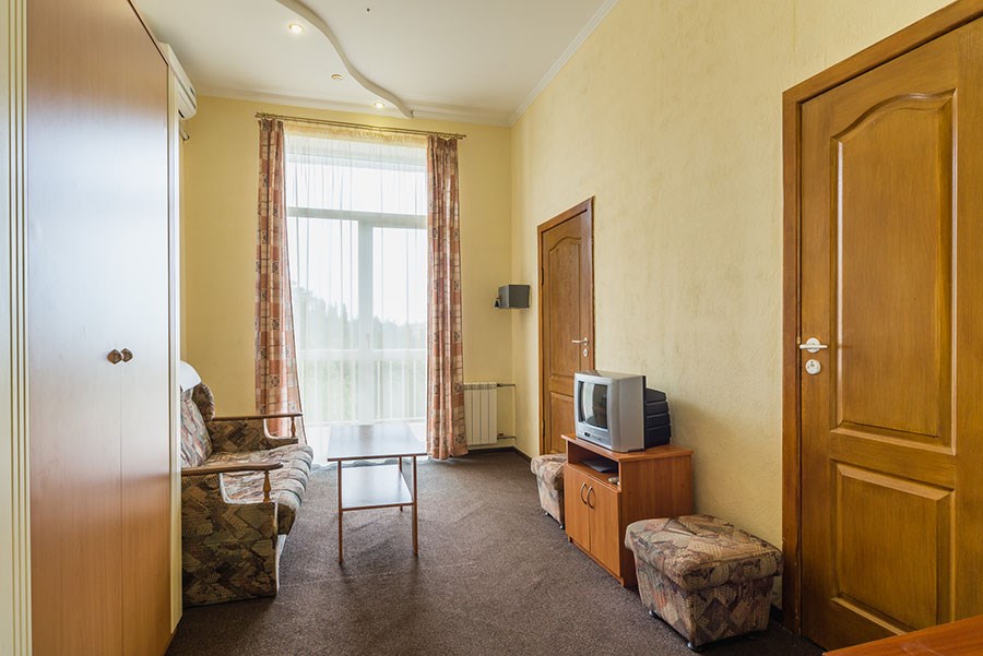 Двухместный однокомнатный номер с балконом. Благодаря своему удобному расположению в парке отдыхающие в полной мере могут насладиться тишиной и лечебным воздухом.