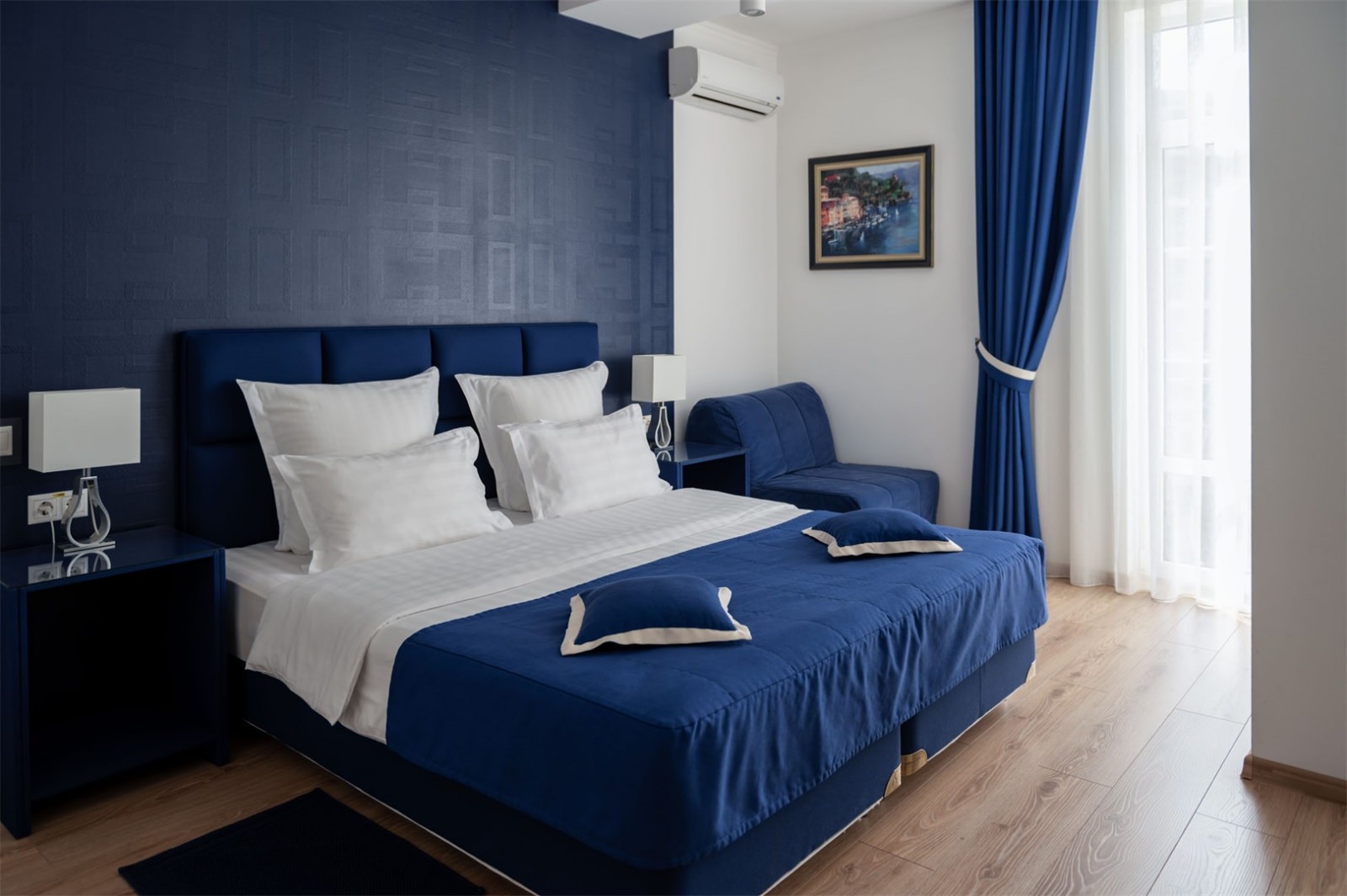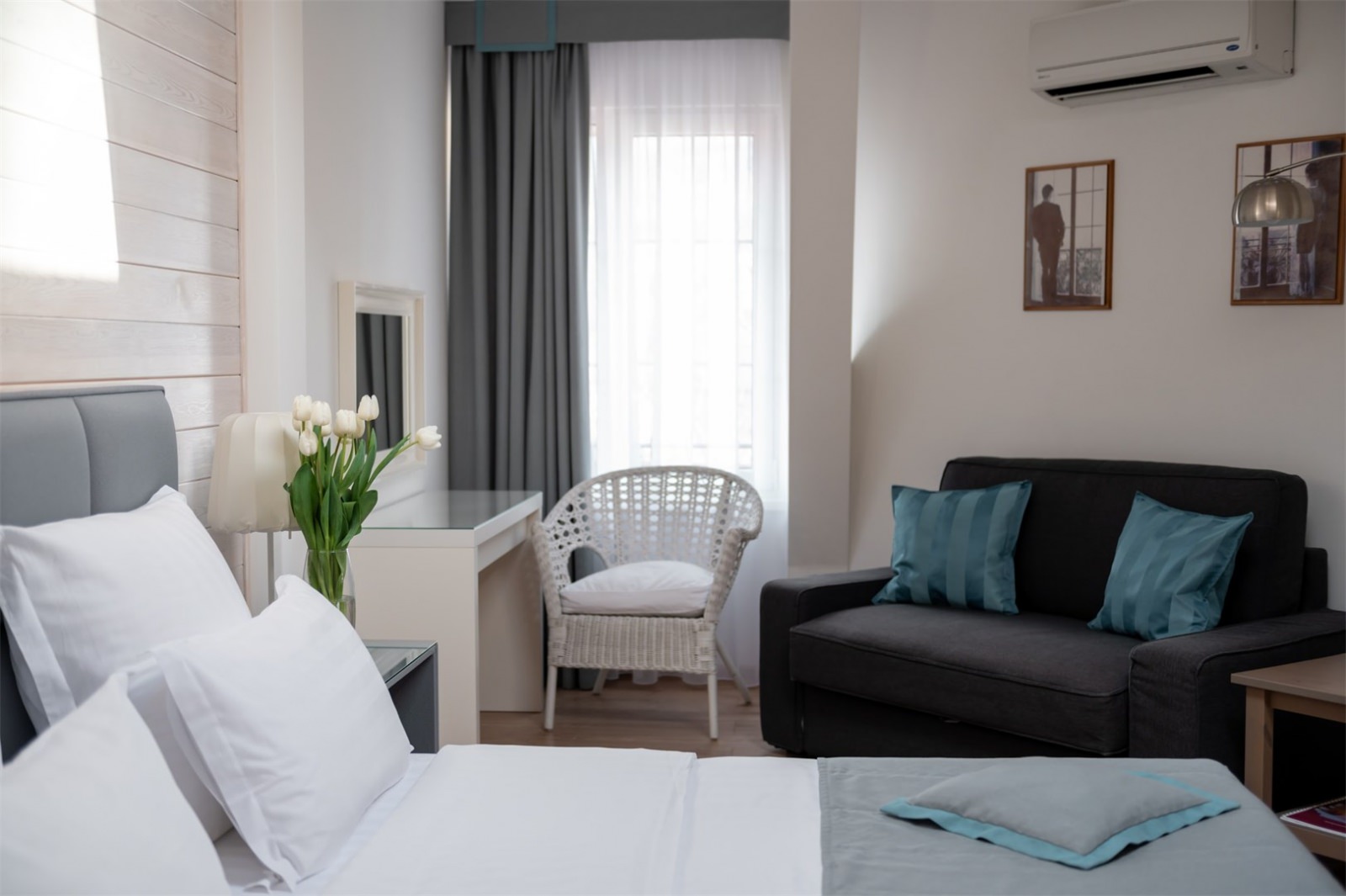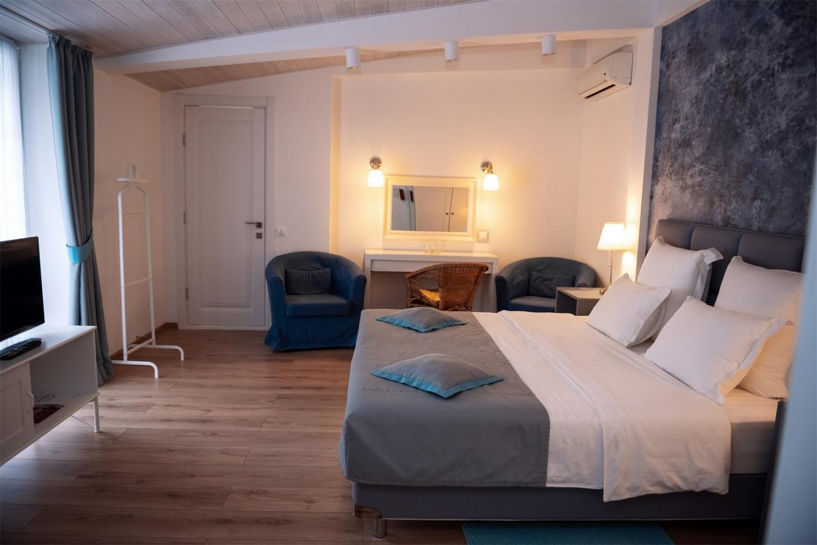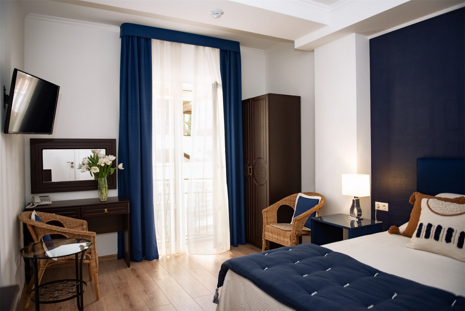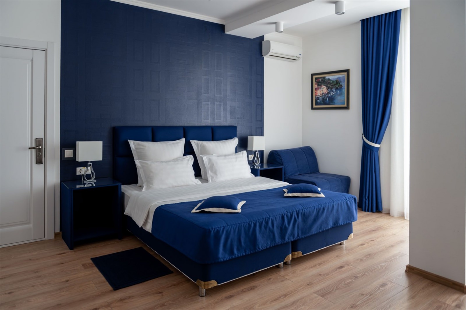 Чудесный отель скажу я вам) Небольшой, очень чистый и ароматный! Брали 2х комнатный номер. Мебель вся новая, очень атмосферно, такой прованс с французским балконом. В каждой комнате телевизор (что редкость), предусмотрен отпариватель (что удобно и безопасно). Ванна это особыий шик. Внизу ресторан с отличной кухней, мы попали на выступление пианиста. Завтраки тоже были отличные, но приходите пораньше). Внутри двора есть бассеин, лежаки и чистые полотенца предусмотрены. Можно заказать еду и напитки. До моря по улочкам пешком идти минут 15, вокруг красота! Но можно и на трансфере минут 5. Нам очень понравилось, вернемся снова.