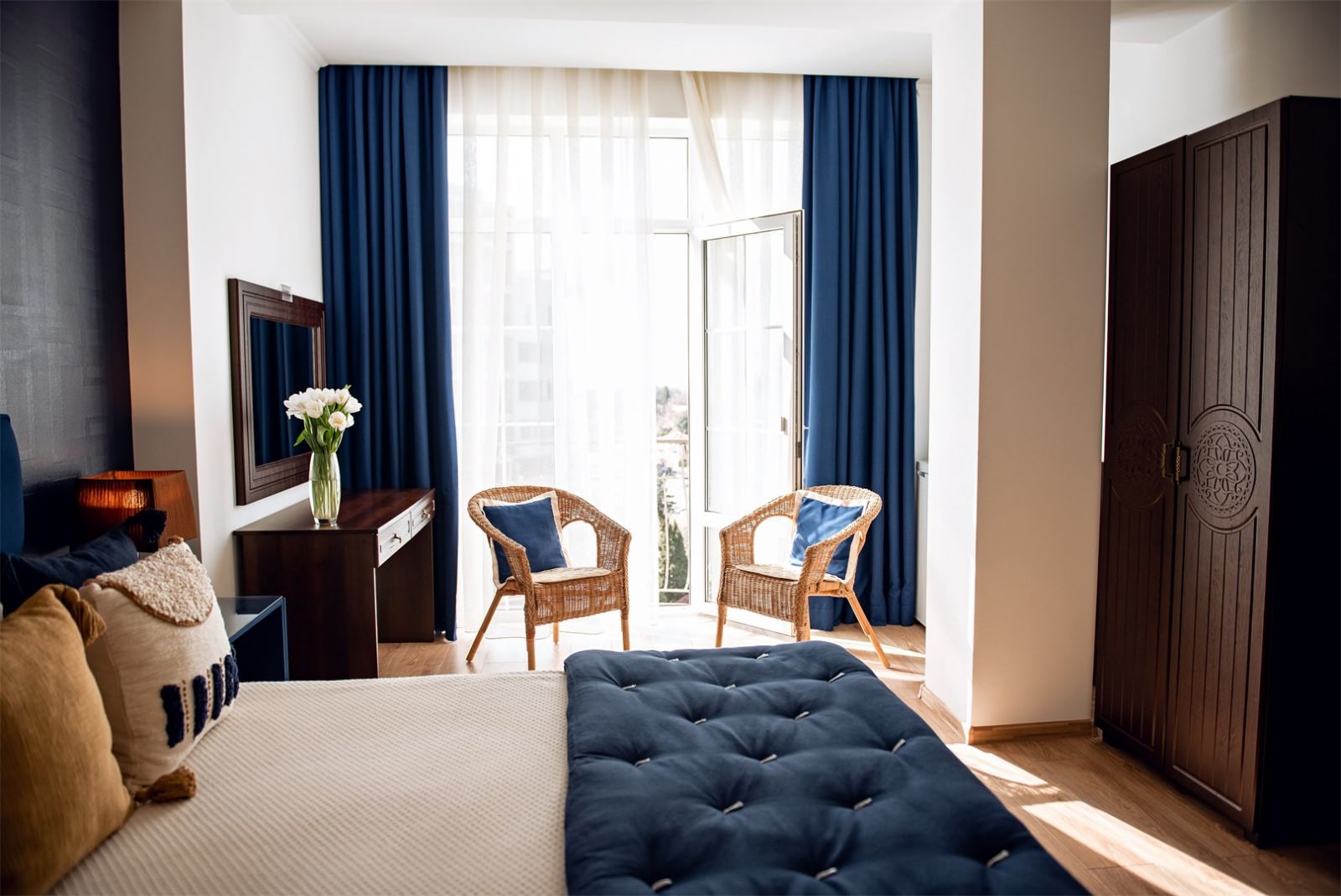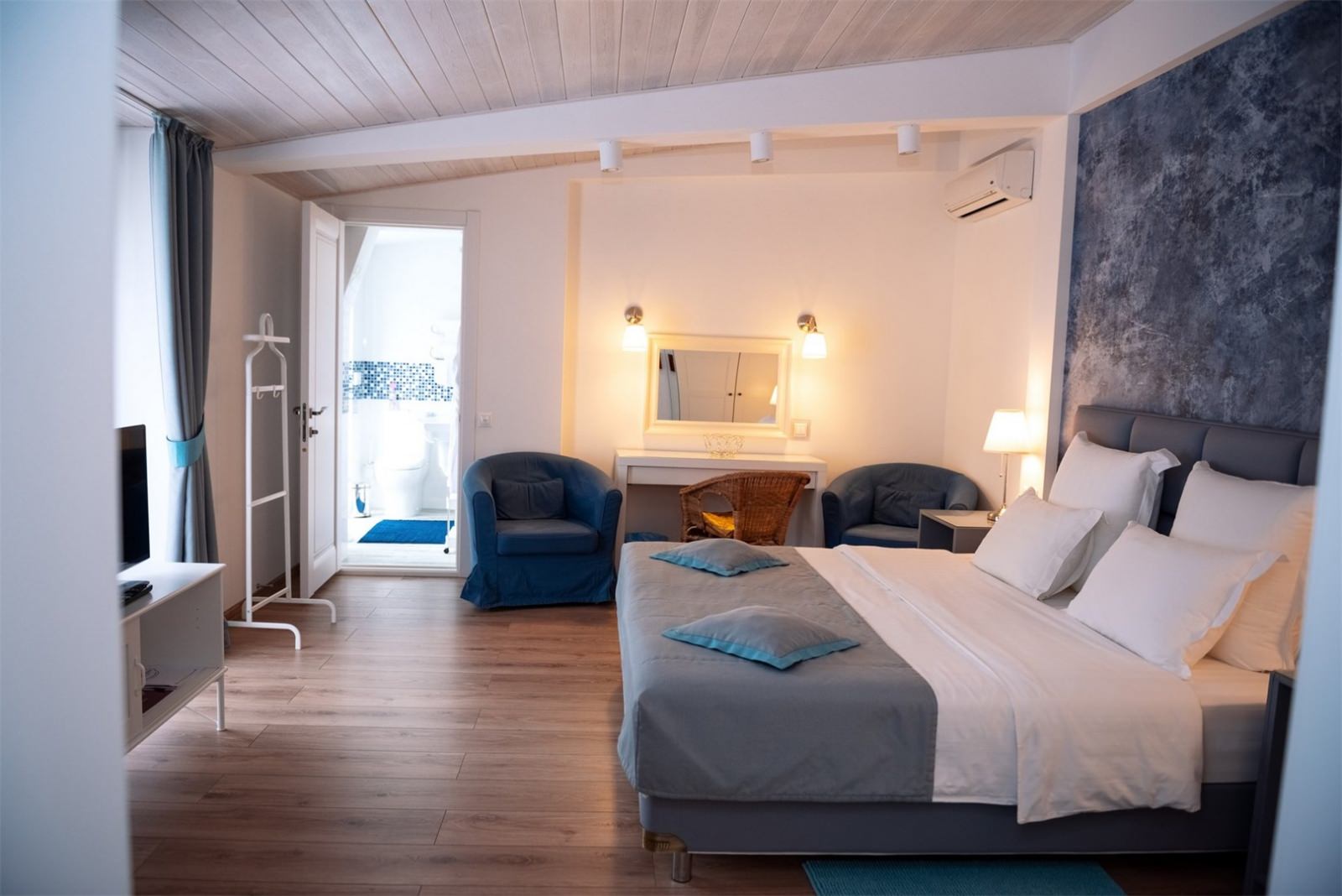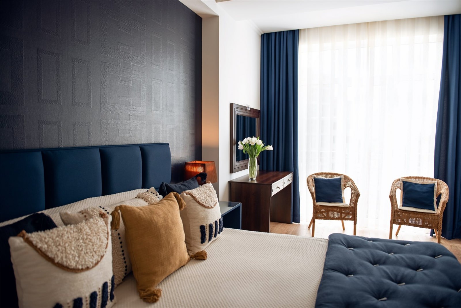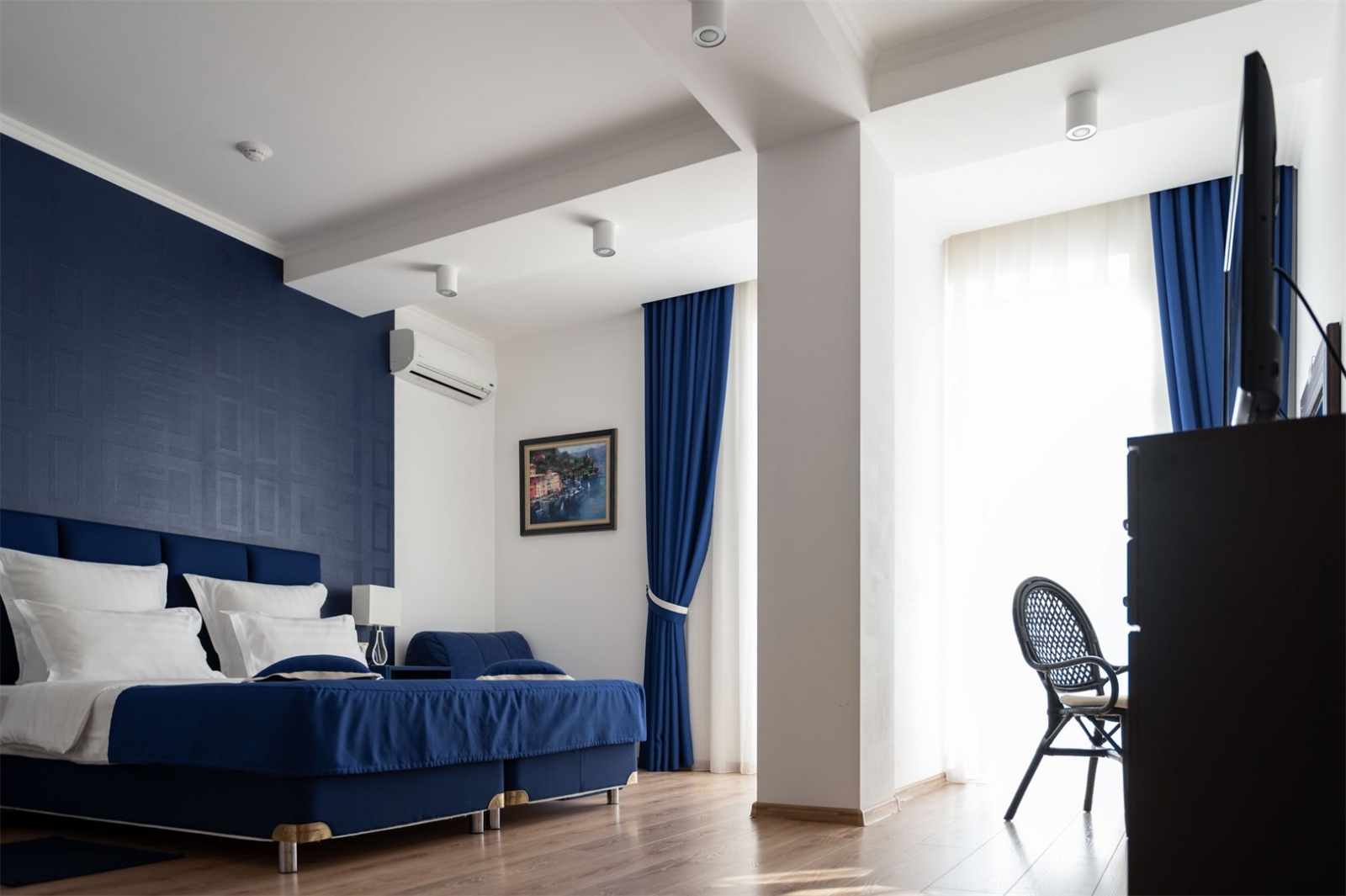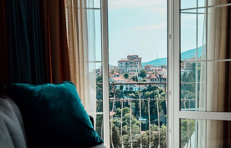 Чудесный отель скажу я вам) Небольшой, очень чистый и ароматный! Брали 2х комнатный номер. Мебель вся новая, очень атмосферно, такой прованс с французским балконом. В каждой комнате телевизор (что редкость), предусмотрен отпариватель (что удобно и безопасно). Ванна это особыий шик. Внизу ресторан с отличной кухней, мы попали на выступление пианиста. Завтраки тоже были отличные, но приходите пораньше). Внутри двора есть бассеин, лежаки и чистые полотенца предусмотрены. Можно заказать еду и напитки. До моря по улочкам пешком идти минут 15, вокруг красота! Но можно и на трансфере минут 5. Нам очень понравилось, вернемся снова.
