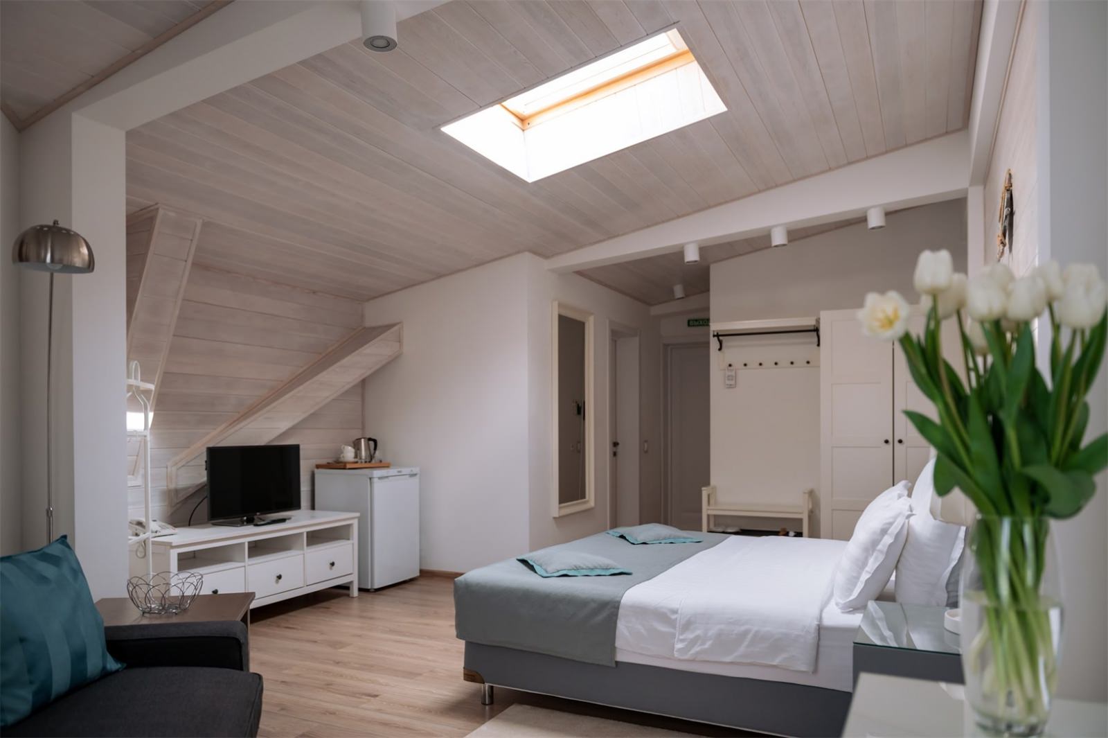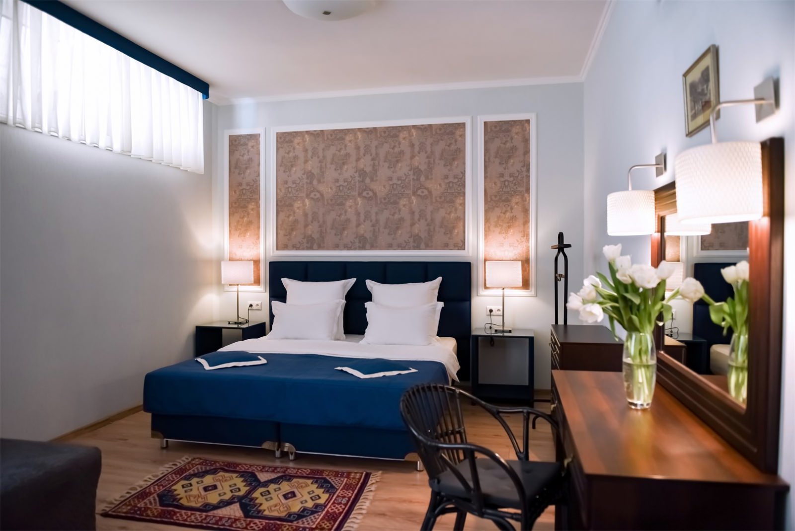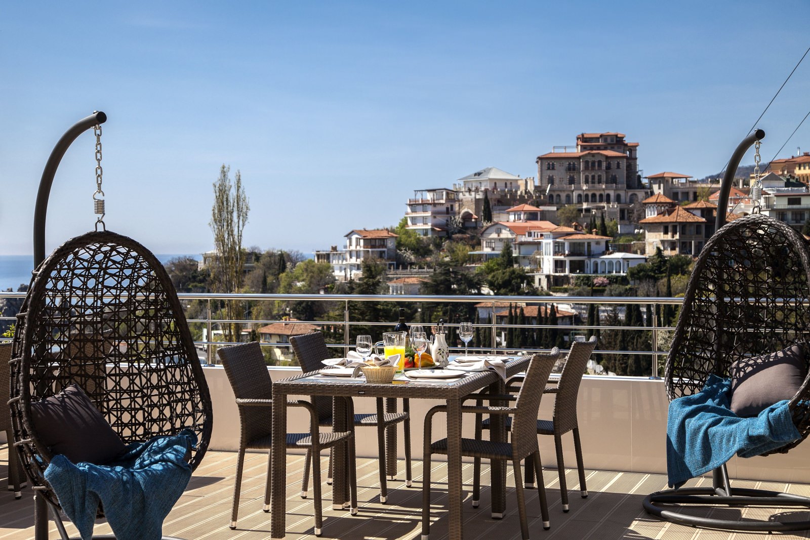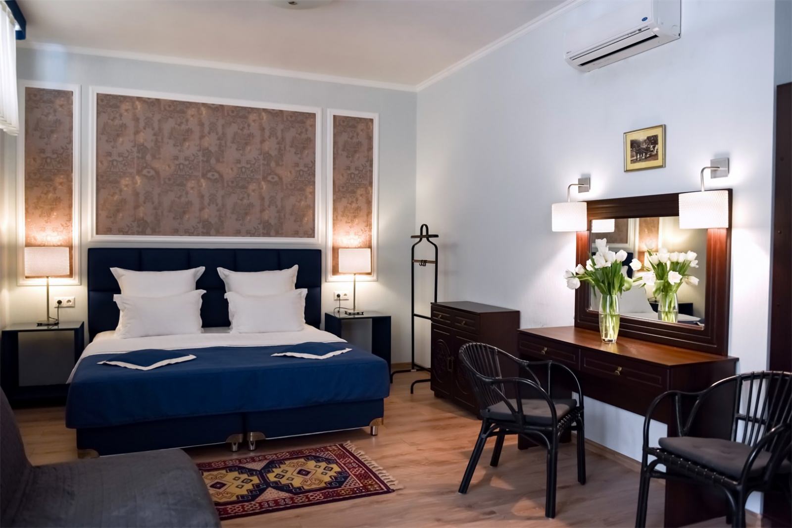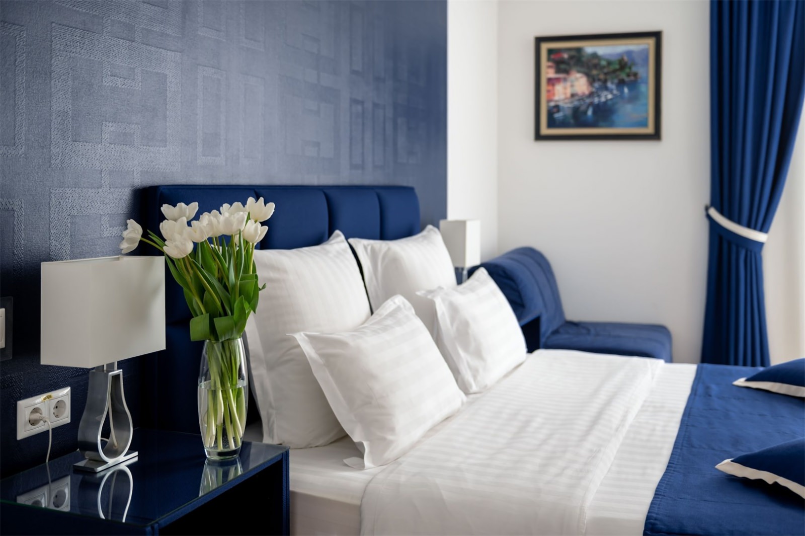 Чудесный отель скажу я вам) Небольшой, очень чистый и ароматный! Брали 2х комнатный номер. Мебель вся новая, очень атмосферно, такой прованс с французским балконом. В каждой комнате телевизор (что редкость), предусмотрен отпариватель (что удобно и безопасно). Ванна это особыий шик. Внизу ресторан с отличной кухней, мы попали на выступление пианиста. Завтраки тоже были отличные, но приходите пораньше). Внутри двора есть бассеин, лежаки и чистые полотенца предусмотрены. Можно заказать еду и напитки. До моря по улочкам пешком идти минут 15, вокруг красота! Но можно и на трансфере минут 5. Нам очень понравилось, вернемся снова.