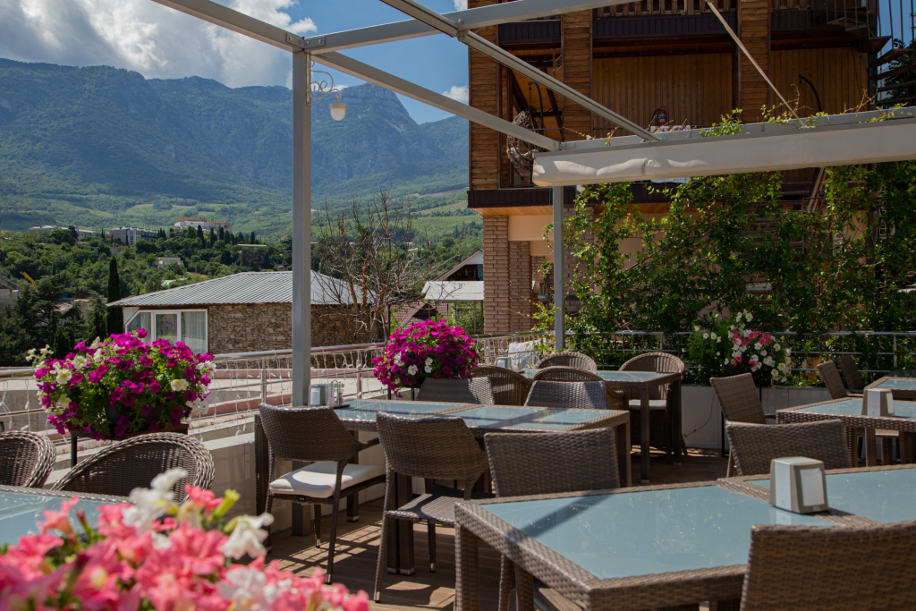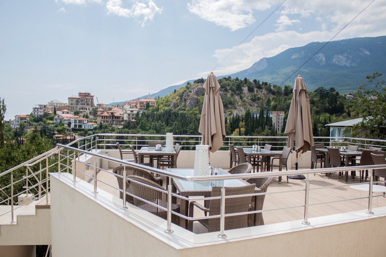 Отель «Мускатель» находится в центральной части одного из самых живописных курортных поселков Южного Берега Крыма – Гурзуфе, разместившемся в восемнадцати километрах от Ялты. Несмотря на то, что «Мускатель» расположен в тихом районе, в шаговой доступности от него главные развлекательные места поселка, культурные и природные достопримечательности – старый Гурзуф, набережная, заповедник «Гора Балгатура», скала Шаляпинская. В сорока минутах езды – знаменитая канатная дорога «Ай-Петри», в восьмидесяти километрах аэропорт Симферополя. Трехэтажный корпус отеля с небольшой благоустроенной территорией предлагает отдыхающим комфортабельные номера Люкс и Стандарт первой категории, вмещающие до сорока двух человек. Номера, оформленные в классическом стиле, с видами на горы, море или бассейн, оборудован качественной мебелью, современной техникой, санузлом с душем и необходимыми косметическими принадлежностями. Отдыхающим отель предлагает завтраки по системе «меню-заказ» в гостиничном ресторане. В распоряжении постояльцев открытый бассейн с зоной отдыха, банный комплекс с парной и сауной, массажный кабинет. Гостям также доступны услуги прачечной, охраняемая автостоянка, беспроводной интернет. Для детей организована игровая комната, работают воспитатели и аниматоры, доступна аренда стульчиков для кормления или кроваток-манежей, в ресторане есть специальное детское меню. Поселковый пляж расположен в пятнадцати минутах ходьбы от отеля. Ежедневно в летний сезон по расписанию гостей отеля на пляж доставляет трансфер. Галечный пляж оборудован душевыми, раздевалками, навесами, лежаками, на его территории есть бары и кафе.