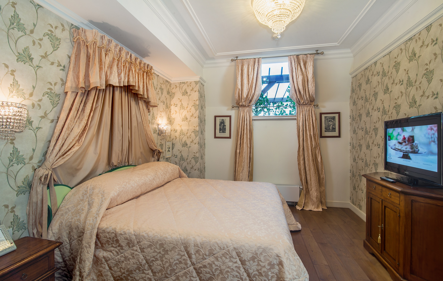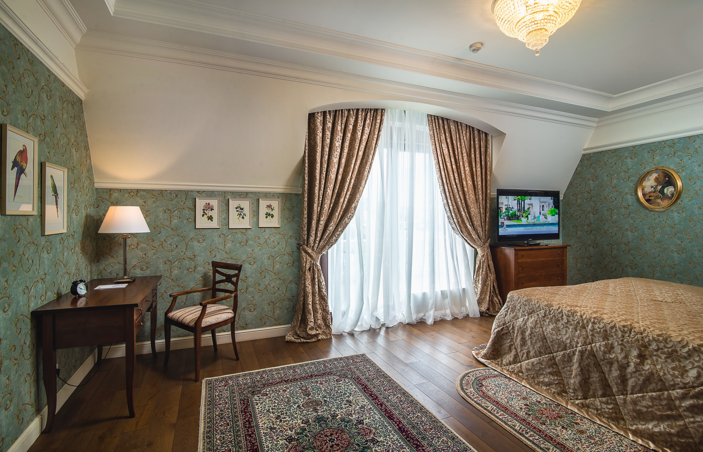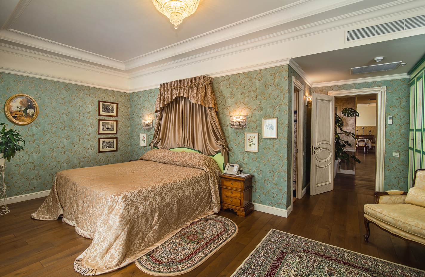 Четырёхместный трёхкомнатный номер находится на 5 этаже нового здания отеля. Общая площадь 121 кв.м. Номер представлен гостиной и двумя спальнями с большими двуспальными кроватями. Гостиная представляет собой объемный зал с декоративной кухней, столовой, зоной отдыха и выходом на южную террасу с панорамным видом на Набережную, Ялтинскую бухту, горы, маяк и море. Одна из спален имеет выход на восточную террасу с прекрасным видом на особняк «Вилла Елена», ресторан «Гранд Терраса», парк и бассейн отеля, восточную гряду Крымских гор и море. Ванные комнаты оснащены итальянской сантехникой, выполненной в старинном стиле Old England.
