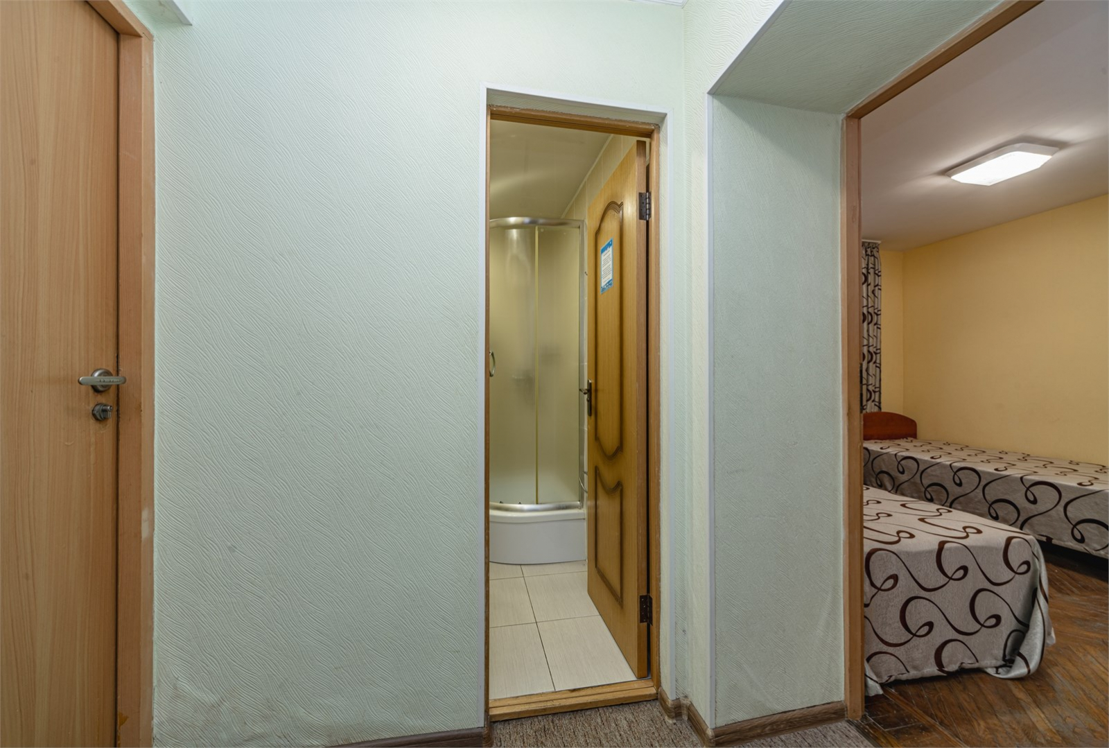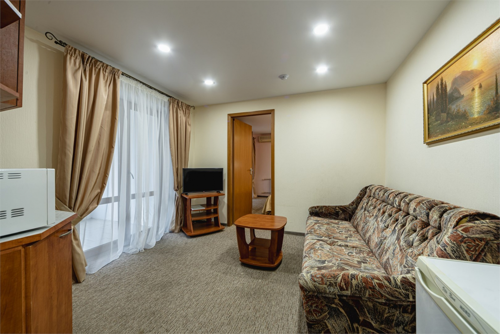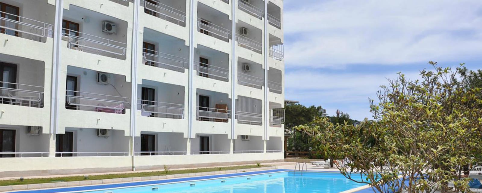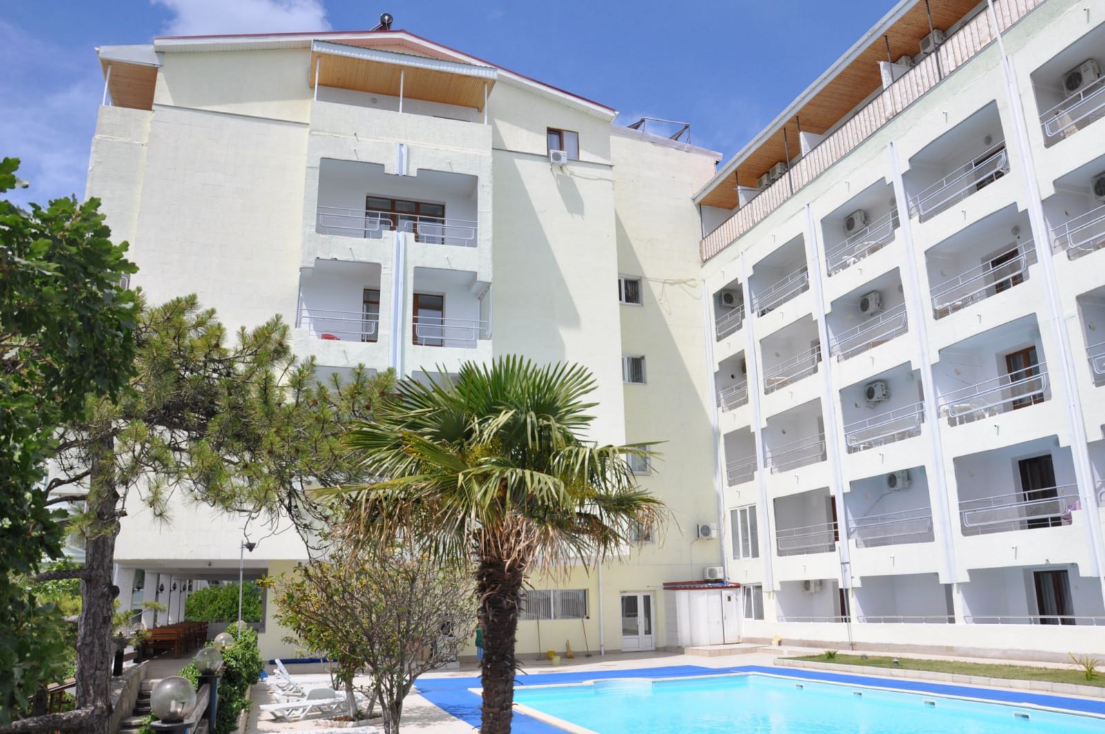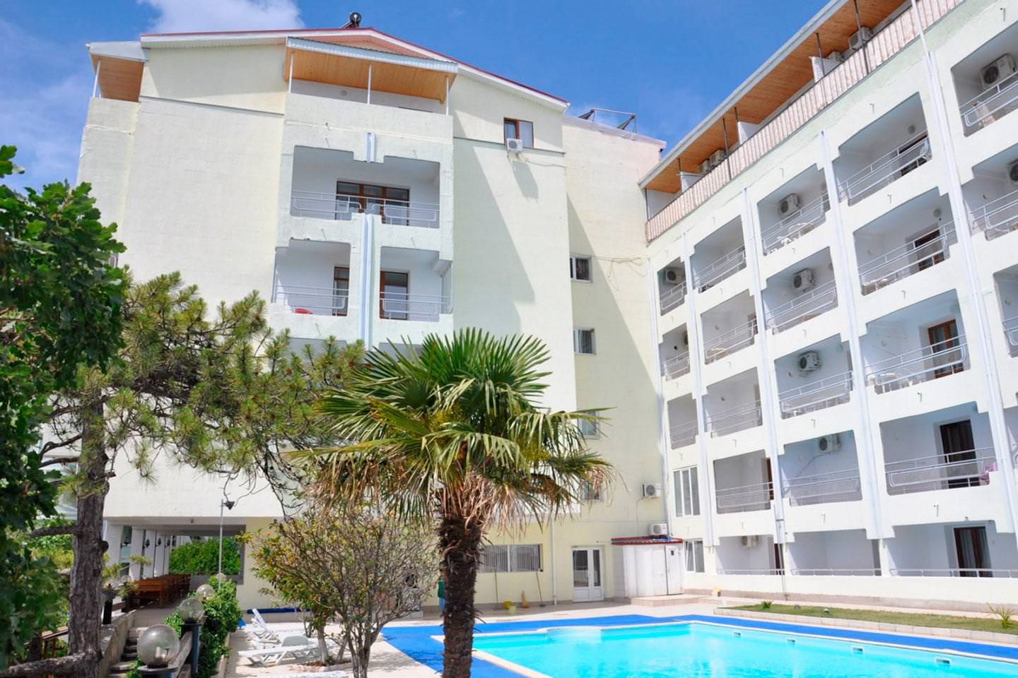 Номерной фонд пансионата размещен в шести этажном корпусе, стоящем на возвышенности. Здание оборудовано лифтом, а из номеров открывается потрясающий вид. Присутствуют следующие категории: эконом, стандарт, полулюкс и просторные пк.