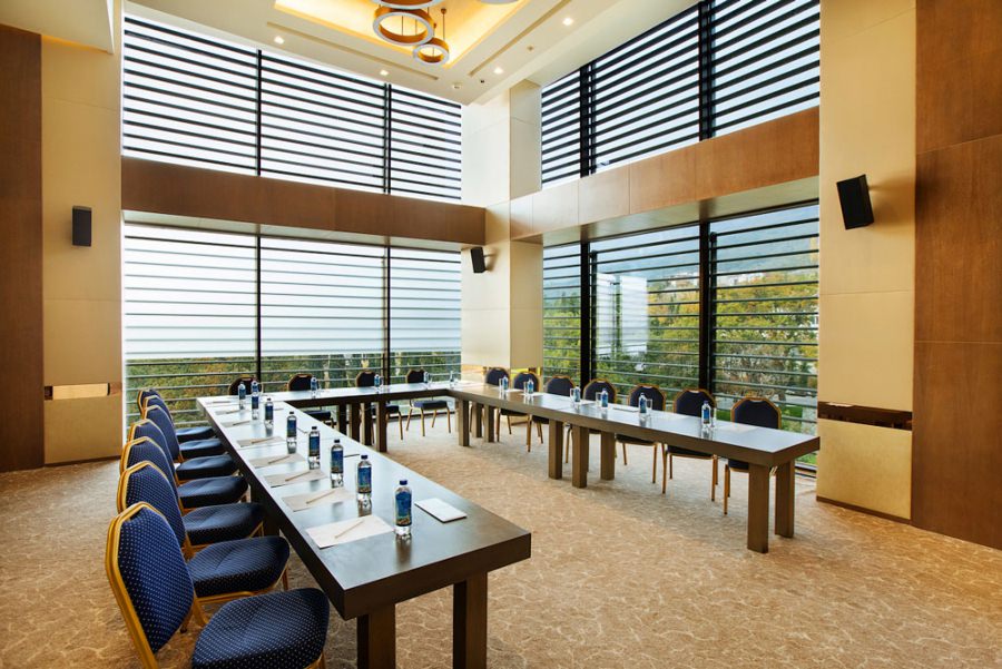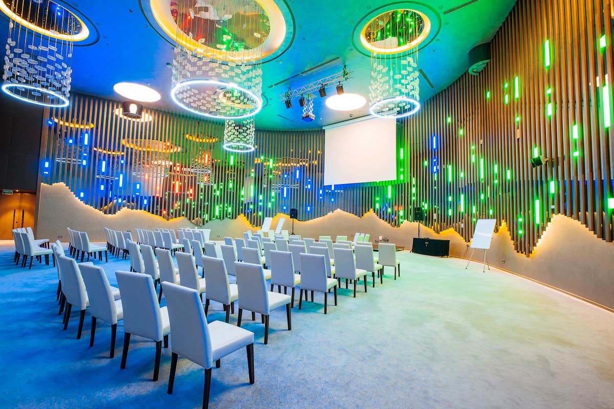 В комплексе Mriya Resort & Spa есть всё необходимое для организации и проведения бизнес-встреч и переговоров разного масштаба. Для этих целей предусмотрены 5 отличных переговорных и три секции бального зала.