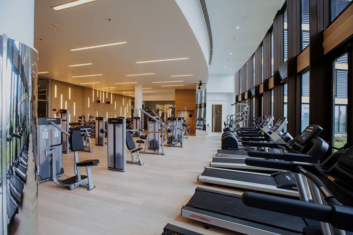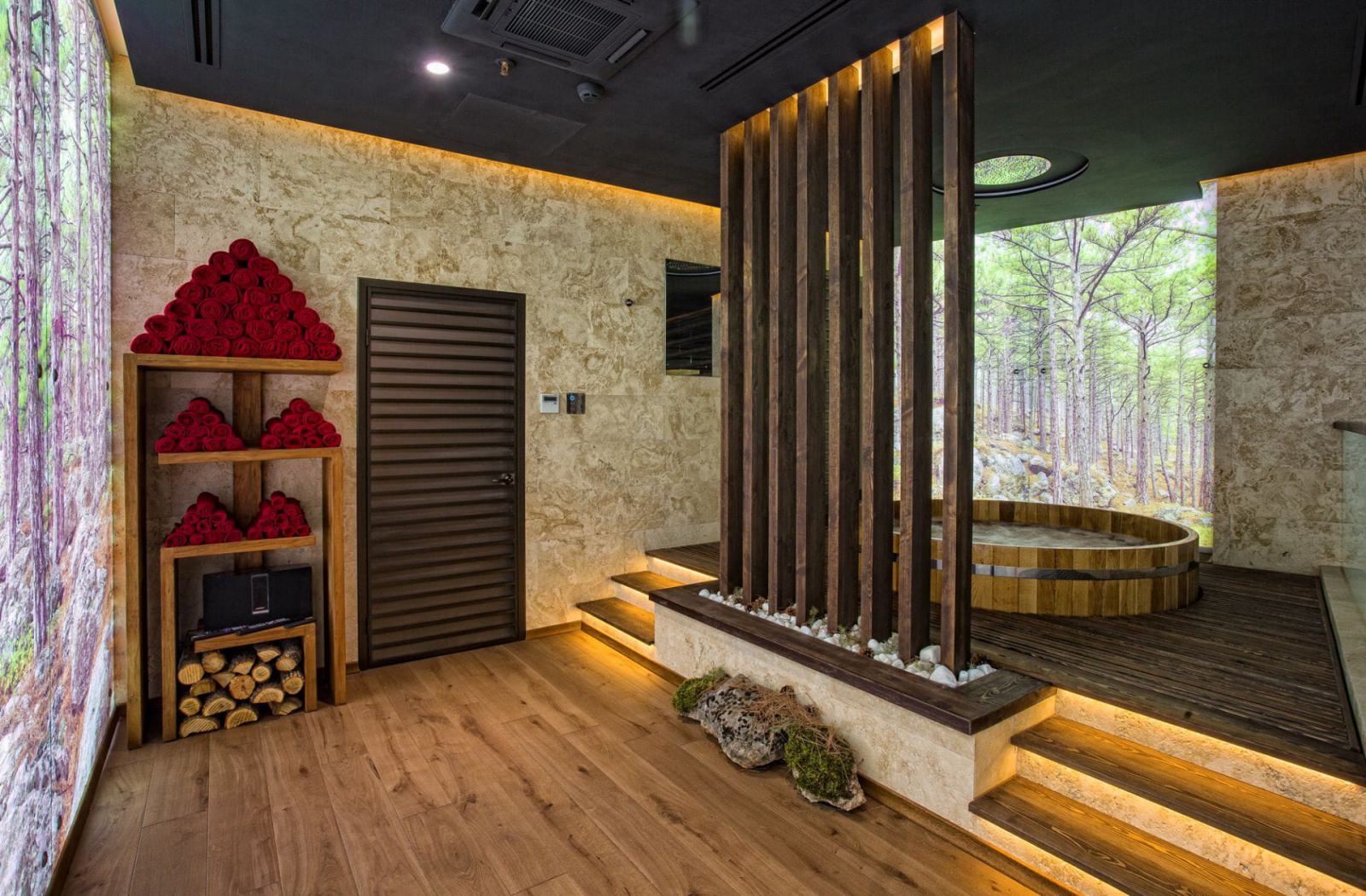 Нулевой уровень несет функцию зоны для отдыха и спорта. Здесь находятся хаммам, финская сауна, тренажерный зал и комната для отдыха.