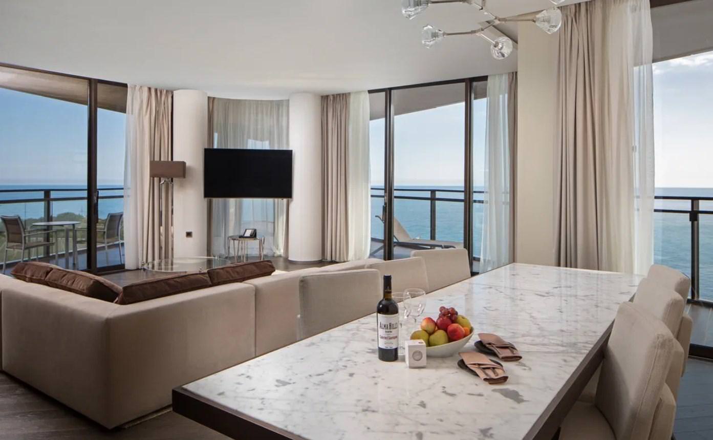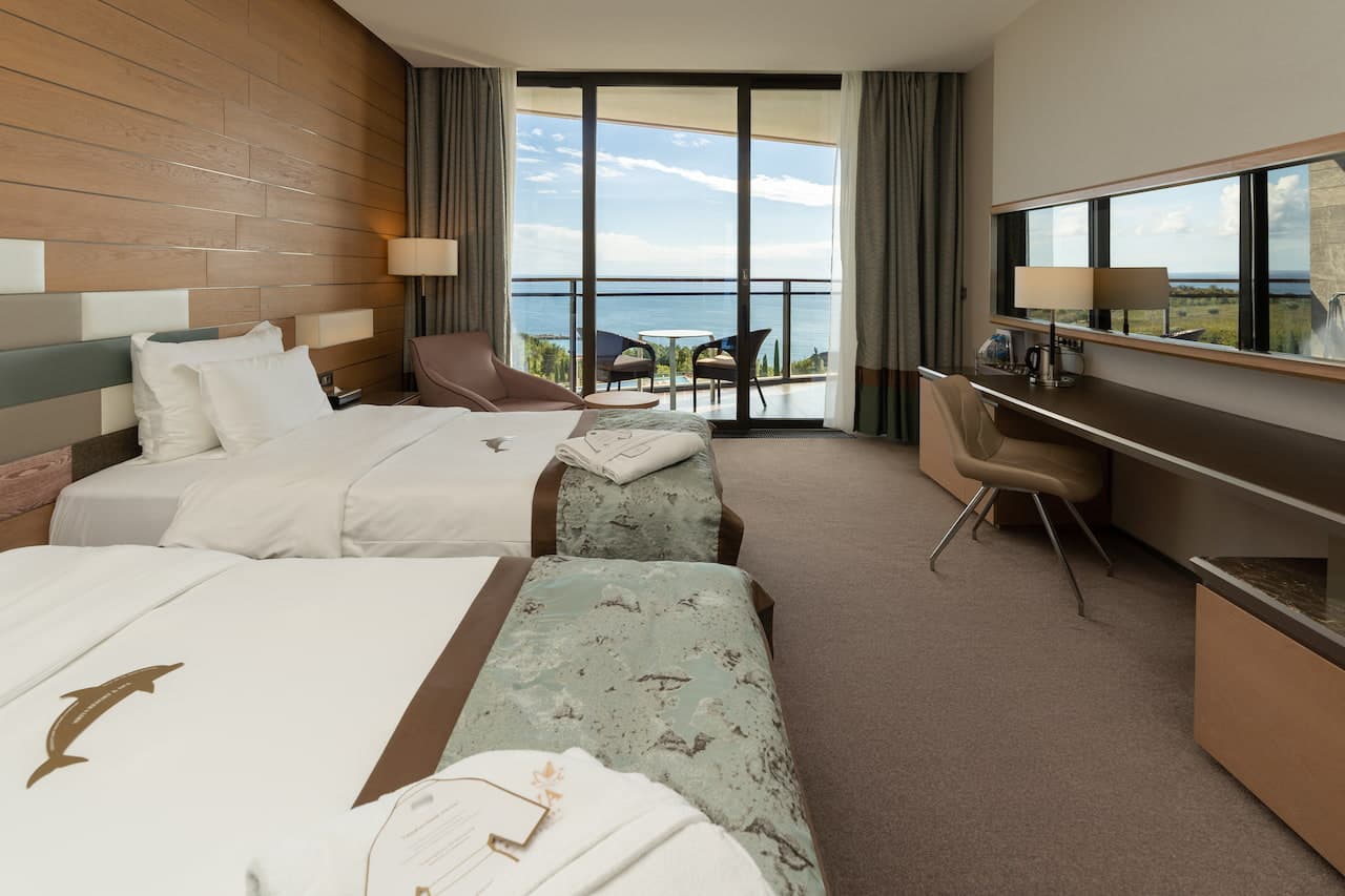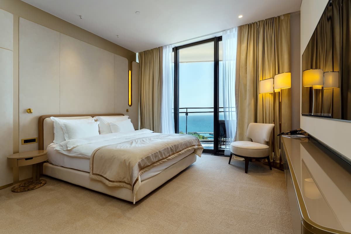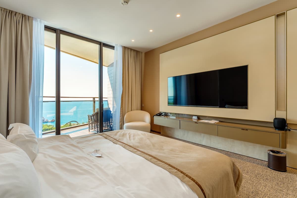 Просторный номер на шестом этаже со светлой гостиной и уютной спальней. Незабываемые панорамы Крыма и пакет комплементарных услуг сделают ваш отдых в кругу самых близких действительно особенным. Прекрасное решение для семьи или небольшой компании.