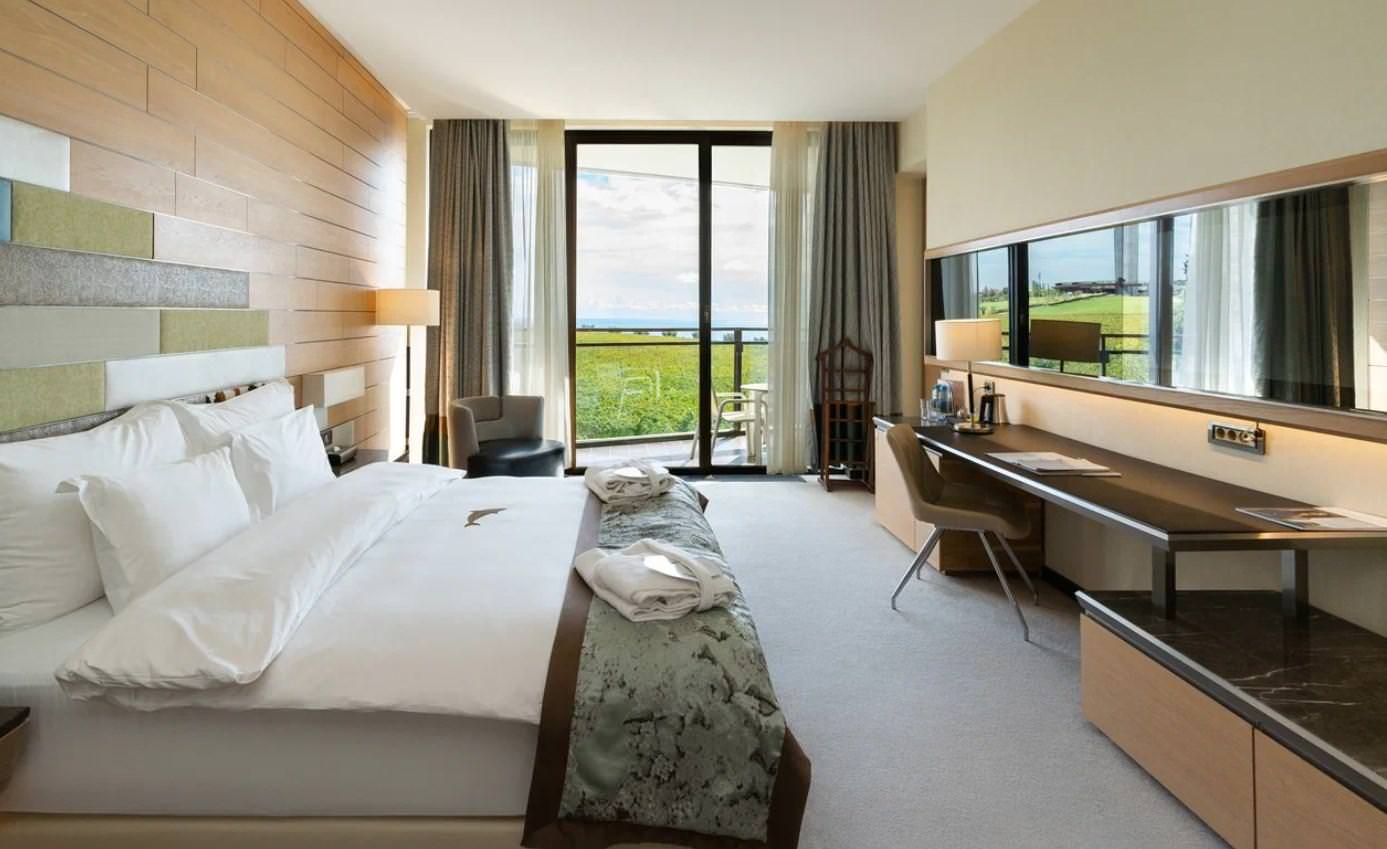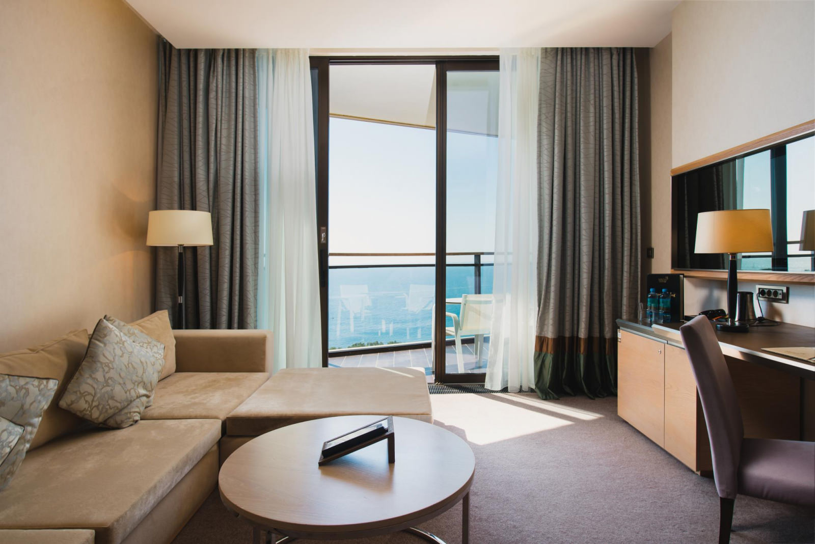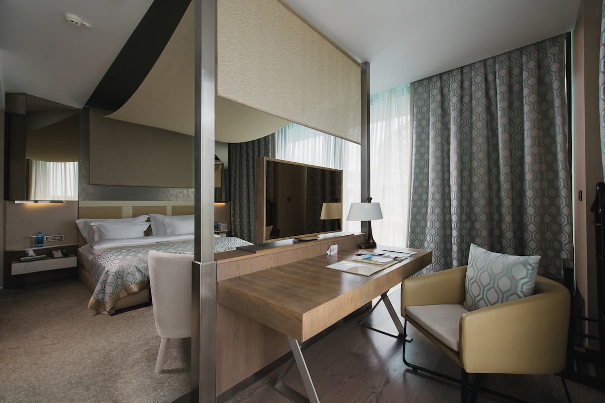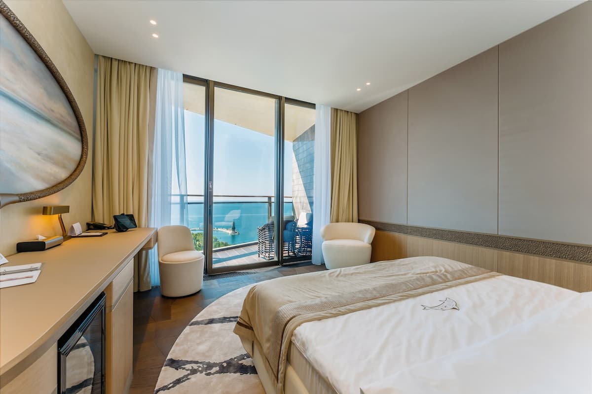 Просторный номер на шестом этаже со светлой гостиной и уютной спальней. Незабываемые панорамы Крыма и пакет комплементарных услуг сделают ваш отдых в кругу самых близких действительно особенным. Прекрасное решение для семьи или небольшой компании.