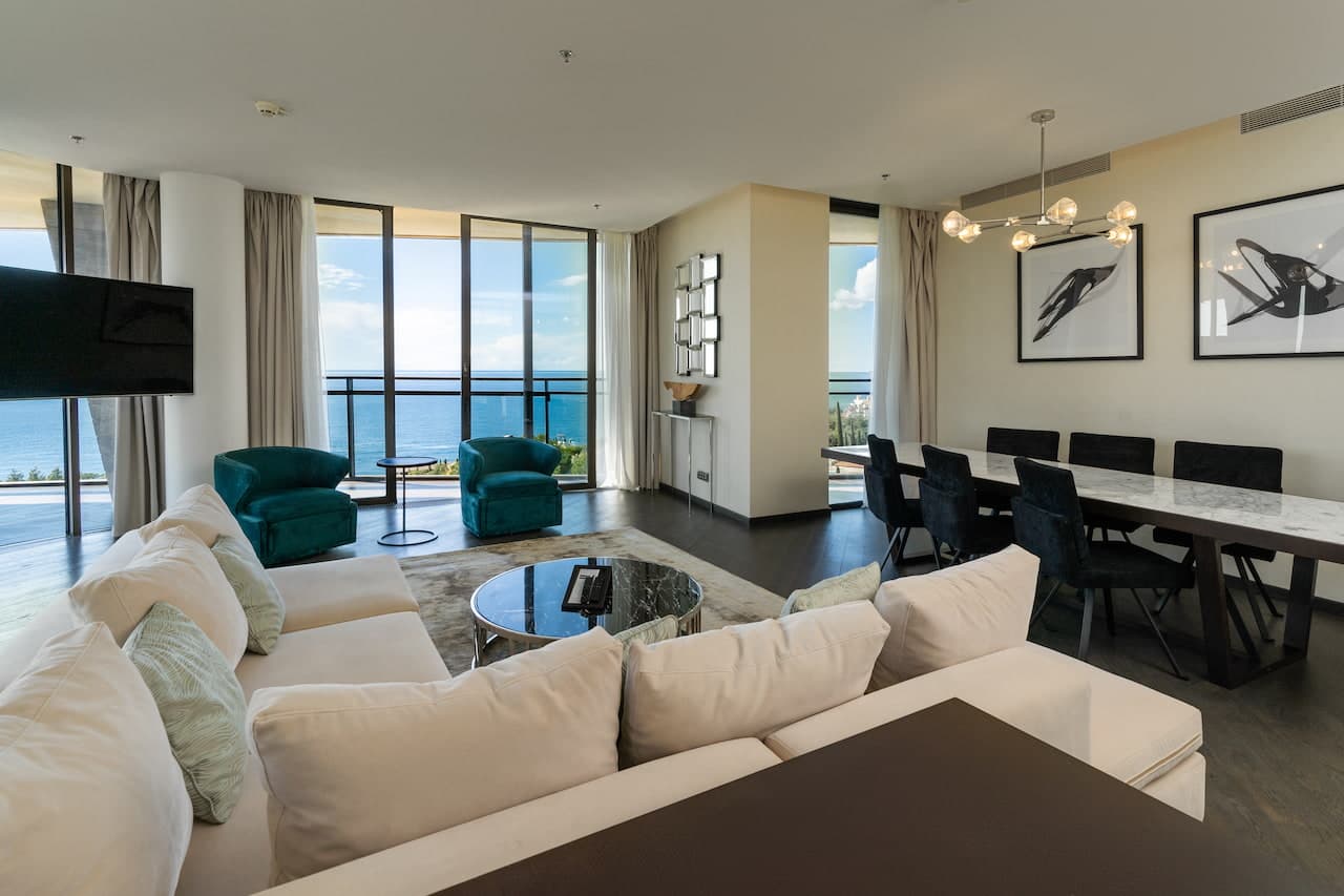 Номера относятся к самой роскошной категории в комплексе, включают в себя большую гостиную, 2 спальни, имеют террасу, просторную ванную и панорамный балкон. 4 гостя с 2-мя детьми смогут во время проживания в полной мере насладиться всеми преимуществами этой категории.