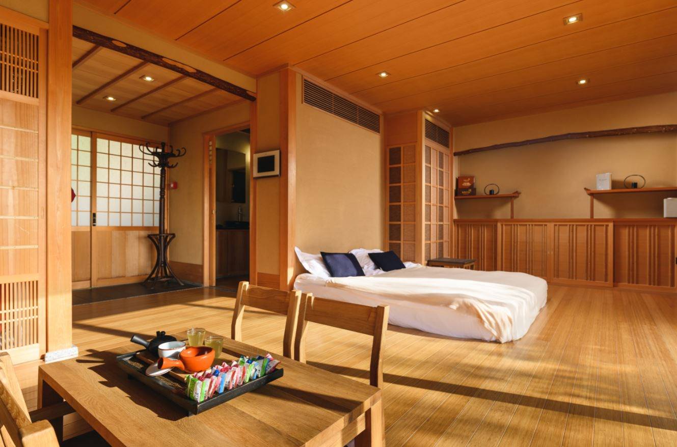 Такие апартаменты оформлены в традиционном японском стиле и занимают площадь 20 кв.м. Для сна и отдыха здесь есть матрац-футон и циновки-татами.